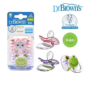 ✨[ PV12014 ] Bộ 2 ty ngậm hỗ trợ chống đột tử/chỉnh nha/chống vẩu Dr.Brown's Prevent họa tiết con mèo và con ếch ( 0-6m )