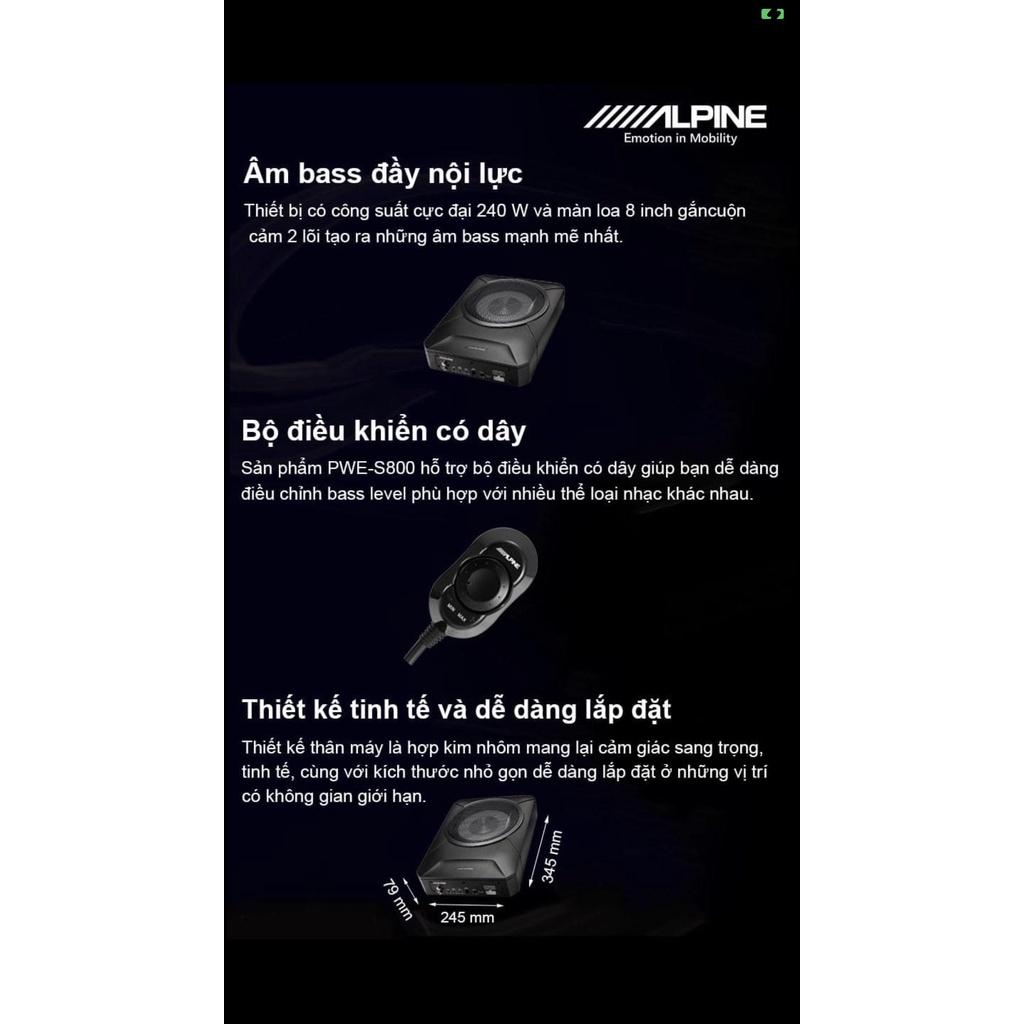 ✨PWE-S800 Loa sub gầm ghế kích thước 8 inch thương hiệu Alpine chính hãng