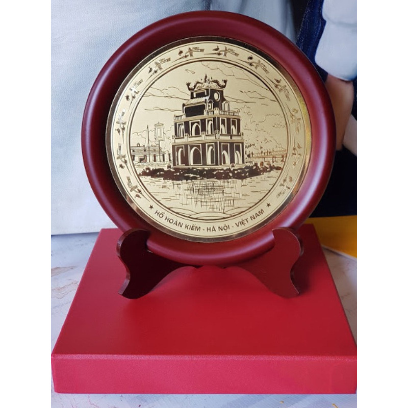 Mua tại TiktokSản phẩm tranh Tháp Rùa Hồ Gươm có chân để bàn phù hợp cho món quà tặng lưu niệm bền đẹp đầy ý nghĩa. Chất liệu được làm từ đồng vàng nguyên chất, viền khung và chân bằng gỗ, hộp giấy lụa. Nhận đặt hàng làm quà tặng lưu niệm với số lượng lớn. Kích thước đãi 20*20cm