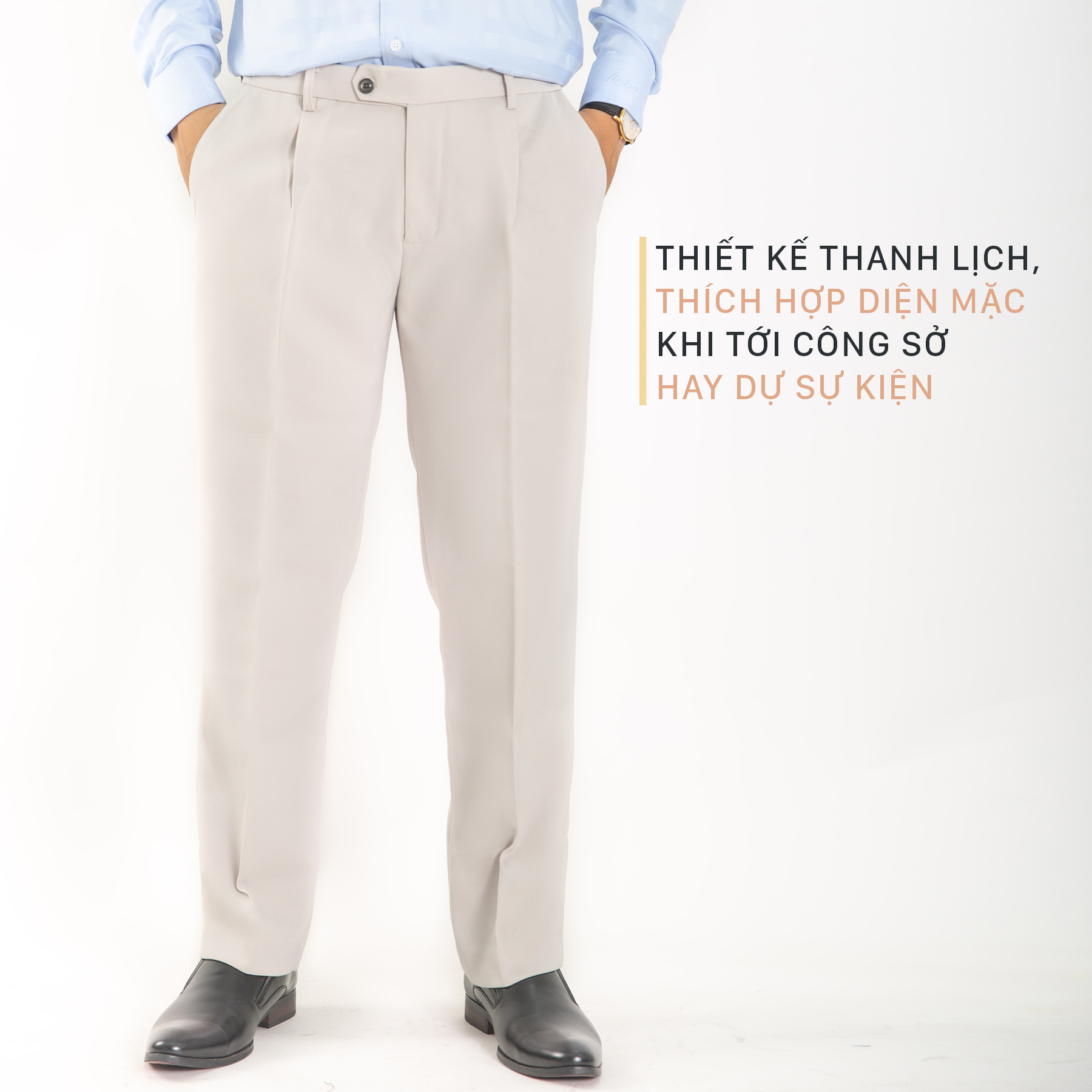 ✨Quân Âu Anton Dáng Rộng, Xếp Ly, Quần Âu Công Sở Nam Trung Niên Màu Trắng Kem QA601