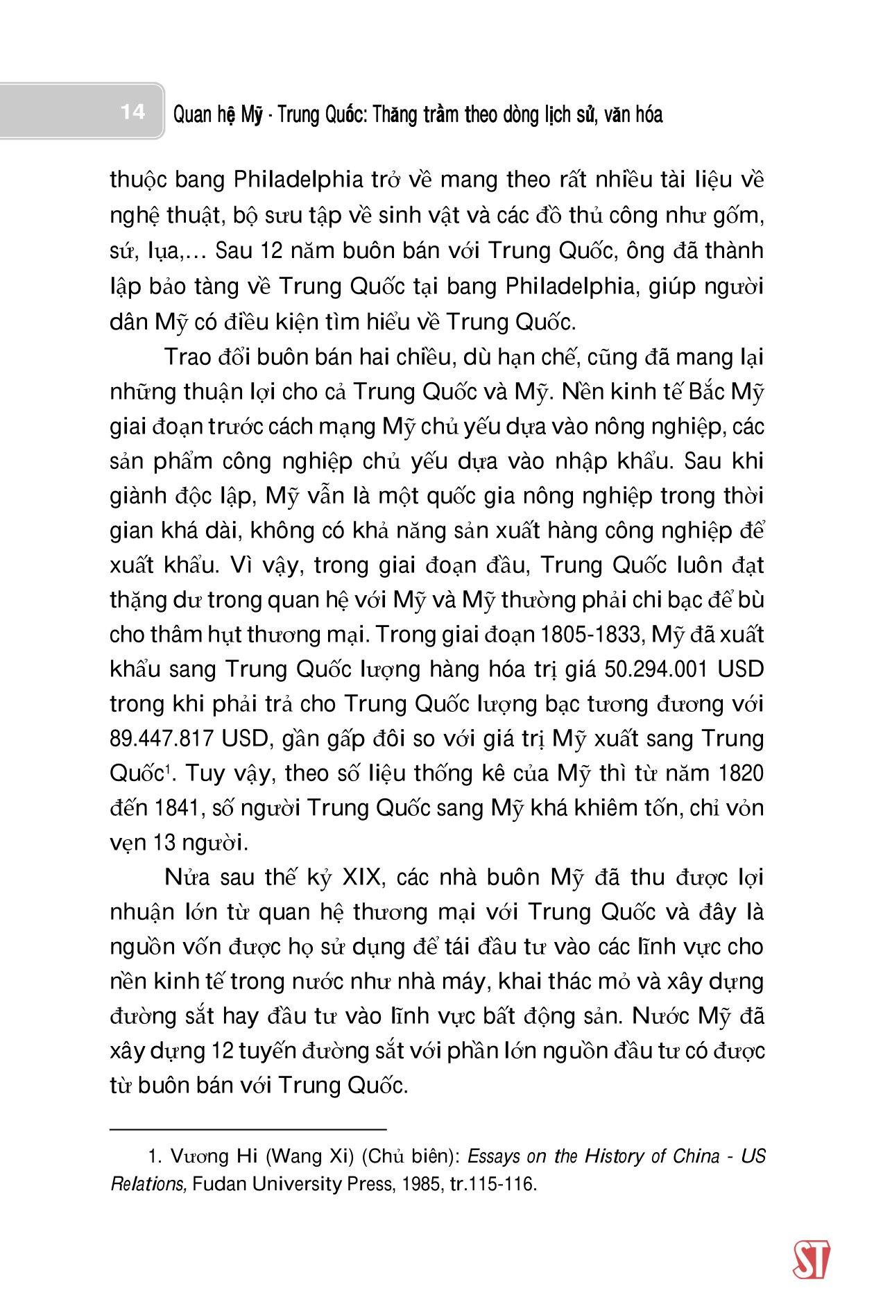 Mua tại TiktokQuan Hệ Mỹ-Trung Quốc - Thăng Trầm Theo Dòng Lịch Sử, Văn Hóa Cuốn sách giúp bạn đọc hiểu thêm về quan hệ giữa Mỹ và Trung Quốc theo lăng kính lịch sử văn hóa, từ đó có cái nhìn tổng thể và xuyên suốt hơn về cặp quan hệ này. Nội dung cuốn sách được bố cục theo 6 chương, mỗi chương là một giai đoạn lịch sử khác nhau của quan hệ Mỹ - Trung Quốc tính từ thời điểm trước khi Quốc dân Đảng nắm chính quyền đến nay. Qua đó giúp cho việc tìm hiểu quá trình định hình và phát triển quan hệ giữa các nước lớn cũng như giữa các nước trên thế giới, làm phong phú thêm nghệ thuật hoạch định và triển khai chính sách đối ngoại của Việt Nam với các đối tác chủ chốt trước diễn biến mới của tình hình thế giới và khu vực.