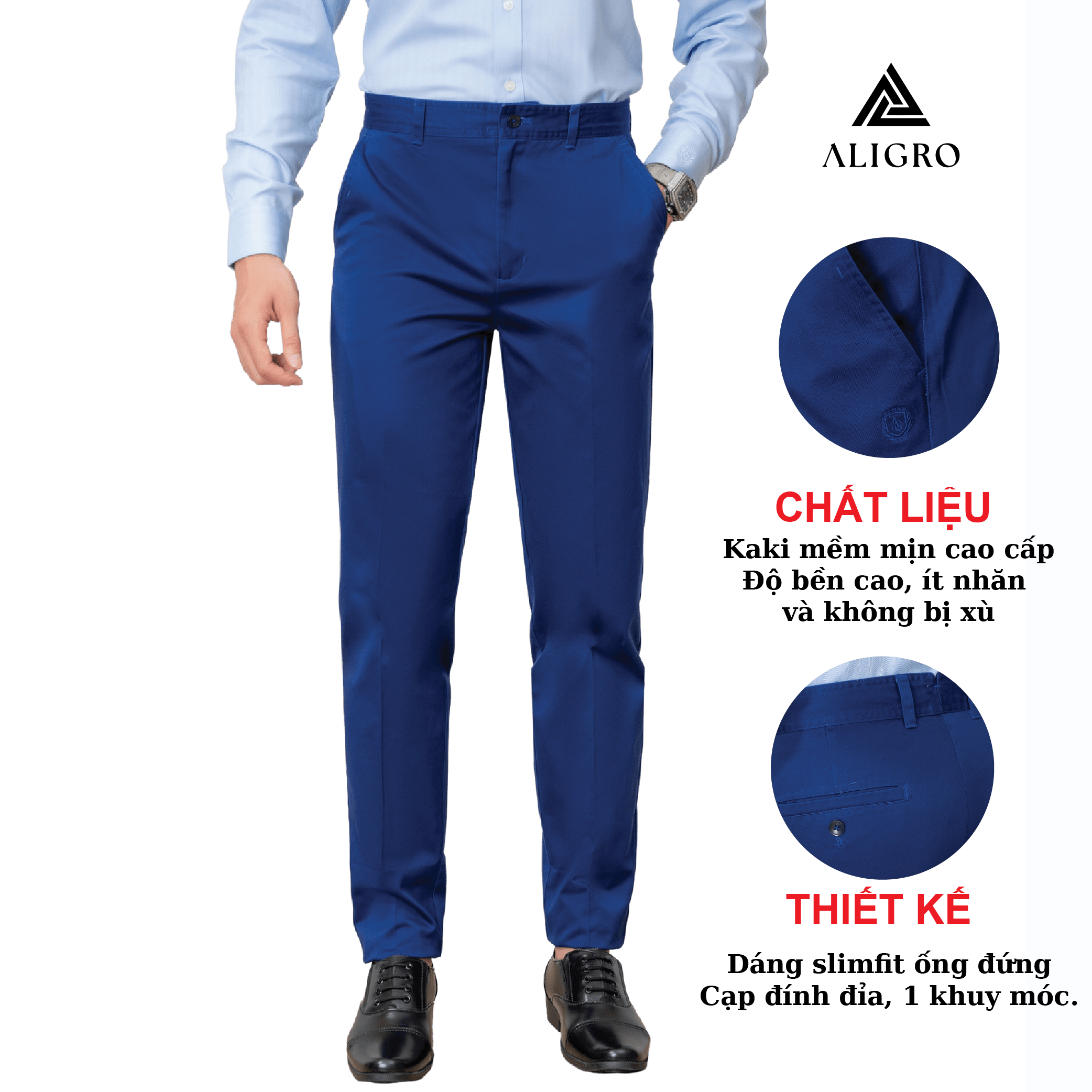 Mua tại TiktokGIỚI THIỆU THƯƠNG HIỆU Mang trong mình tầm nhìn chiến lược trở thành thương hiệu “Thời trang nam được yêu thích nhất Việt Nam” nên Aligro luôn chú trọng nghiên cứu phát triển mẫu mã, phom dáng phù hợp với vóc dáng hình thể đàn ông Việt. Sản phẩm của chúng tôi mang tới hình ảnh trẻ trung, năng động, hiện đại mà không kém phần lịch sự, sang trọng - cam kết mang lại giá trị đích thực và một cuộc sống thịnh vượng hơn cho phái mạnh Việt. CHI TIẾT THIẾT KẾ QUẦN KAKI NAM ALIGRO