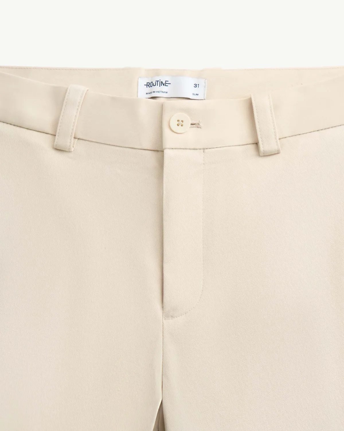 Quần kaki nam lưng liền Form Slim cropped - RT 10S25PCA011 | ROUTINE CÀ MAU Đặc điểm nổi bật Form : Slim cropped Fabric : Cotton Modal Spandex Gender: Nam Collection: Essential 25 Sản phẩm