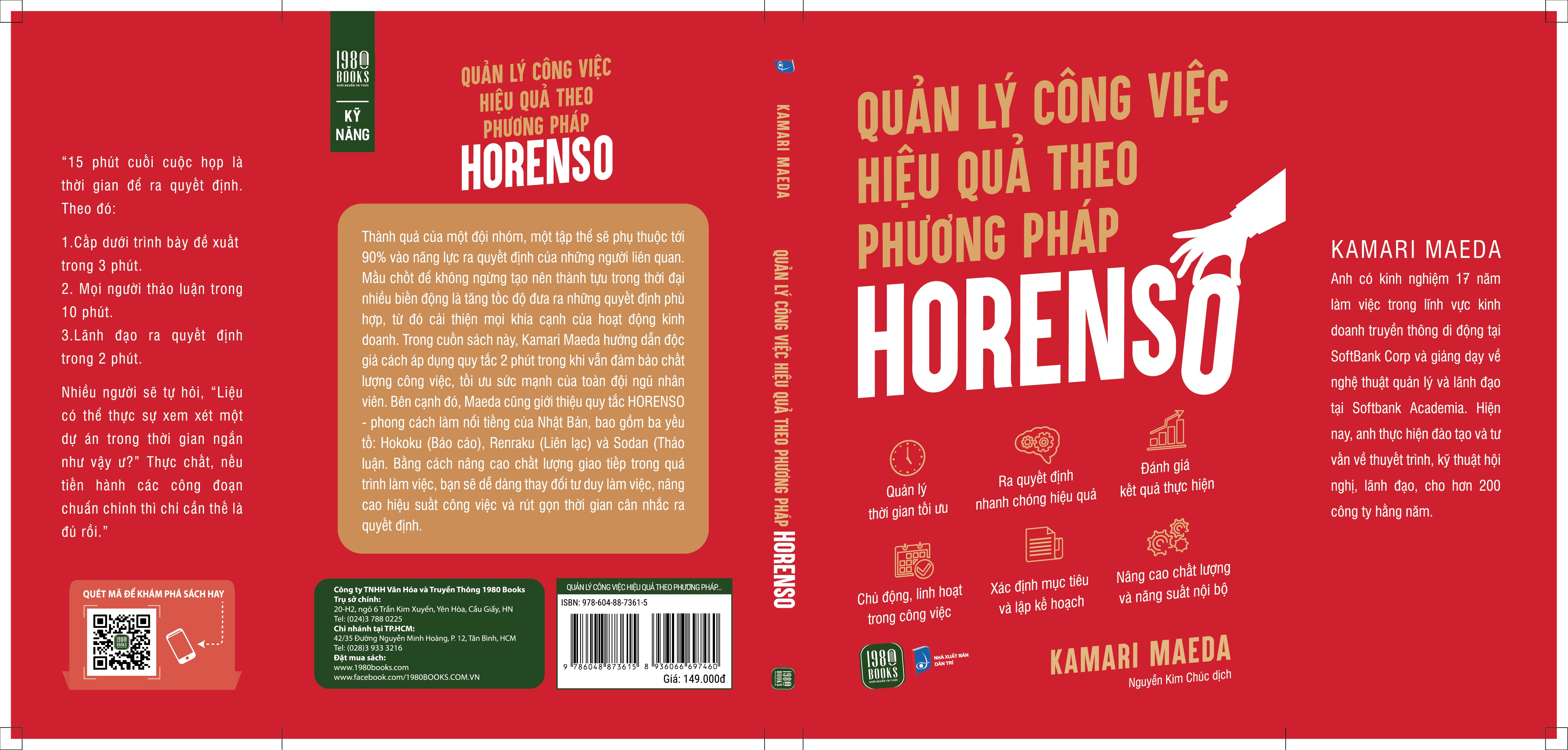 Với quan điểm ra quyết định nhanh hơn đồng nghĩa với thành tích tốt hơn, tác giả Maeda hướng tới việc tạo ra một cơ chế làm việc hợp lý giúp các nhà lãnh đạo tạo điều kiện để tăng tốc độ ra quyết định. Đồng thời vẫn đảm bảo kết quả đầu ra và củng cố tinh thần làm việc nhóm trong công ty, gia tăng trách nhiệm và tinh thần chủ động ở mỗi nhân viên. Để đạt được mục đích rút ngắn thời gian ra quyết định, cuốn sách QUẢN LÝ CÔNG VIỆC HIỆU QUẢ THEO PHƯƠNG PHÁP HORENSO tập trung vào những giải pháp mang tính nền tảng với hiệu quả bền vững, lâu dài.
