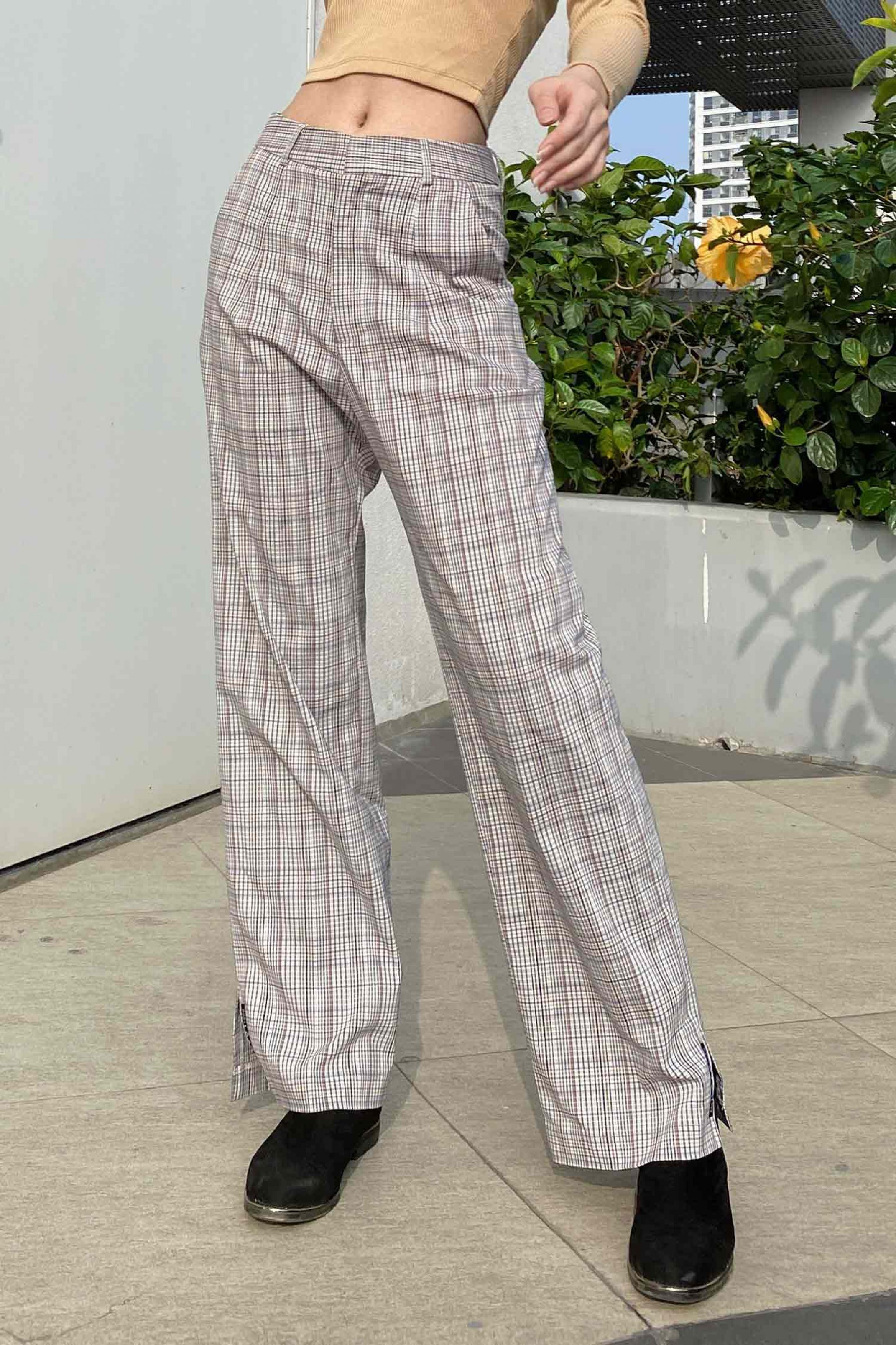 CHẤT LIỆU KAKI THUN CO GIẢN, MỀM ĐỨNG FORM QUẦN HOẠ TIẾT CARO FORM QUẦN ỐNG ĐỨNG, SUÔN THẲNG TẠO ĐÔI CHÂN DÀI PHẦN LAI QUẦN XẺ HAI BÊN TAG LOGO GẮN 2 BÊN ĐƯỜNG