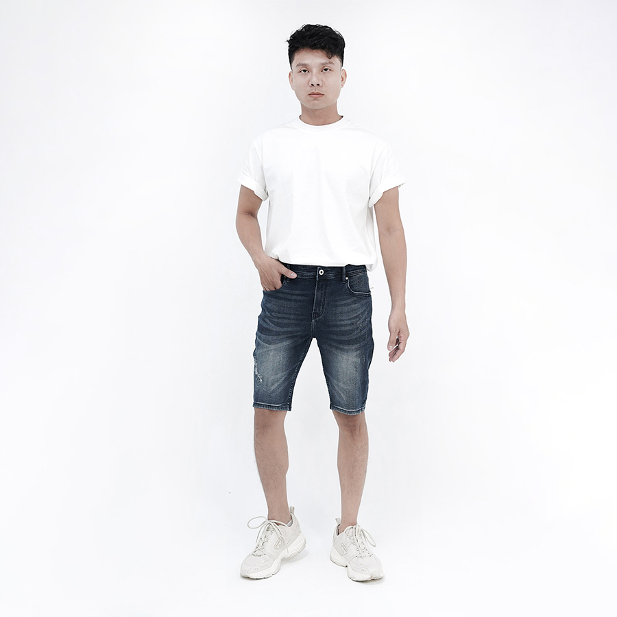 Quần short jeans nam bụi form slimfit thun mài sơn màu xanh đậm S36 | Hunter X-Rays