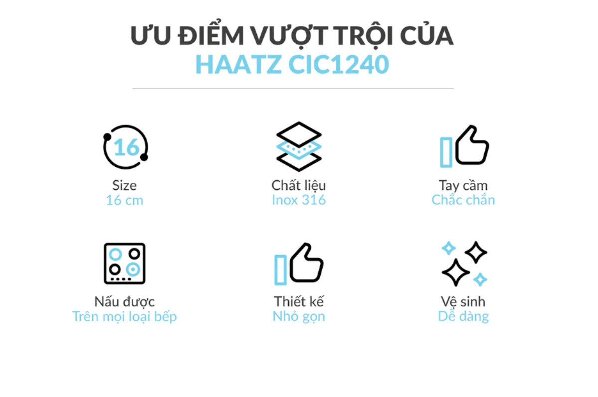 Kích thước 16cm tiện dụng: Dung tích lý tưởng khoảng 1.5 - 2 lít, phù hợp nấu ăn cho 2-4 người.