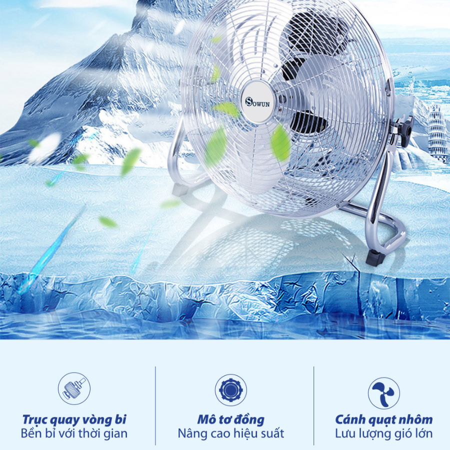 Quạt sàn công nghiệp Sowun SW 801 Gió mạnh máy bền – Làm mát diện rộng Quạt sàn công nghiệp turbo SOWUN 5 cánh SW 810 mang đến luồng gió mạnh mẽ lan tỏa rộng khắp