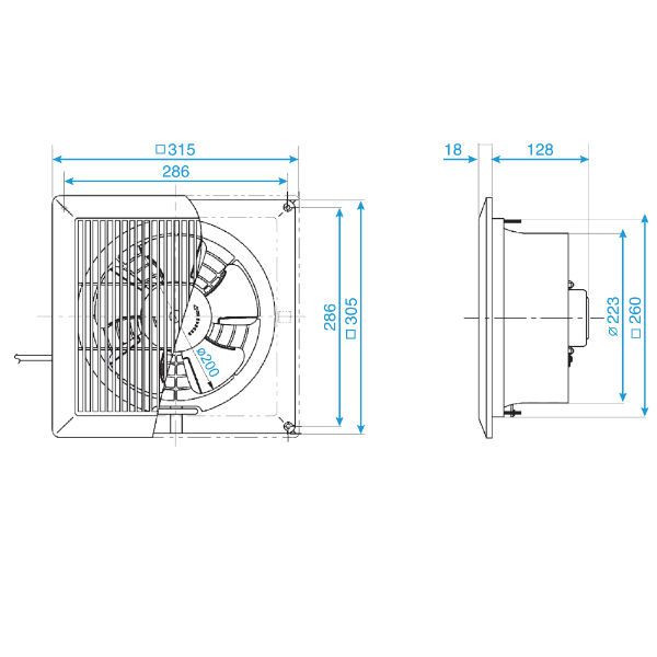 Thông số kỹ thuật - LoạiQuạt thông gió gắn tường - Kiểu quạtQuạt thông gió 1 chiều - Lõi mô tơDây đồng - Động cơBạc đạn - Lưu lượng gió9.5 m3/phút - Kích thước lỗ
