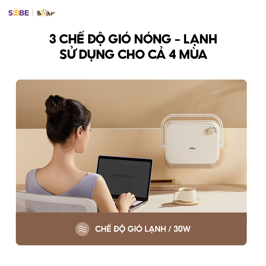 Máy Sưởi Bear Sưởi Ấm Liên Tục Chăm Sóc Chu Đáo Thiết Kế Đa Năng Diệt Khuẩn DNQ-E20N1 - 3 chế độ gió nóng – lạnh, sử dụng cả 4 mùa - Khoảng cách sưởi