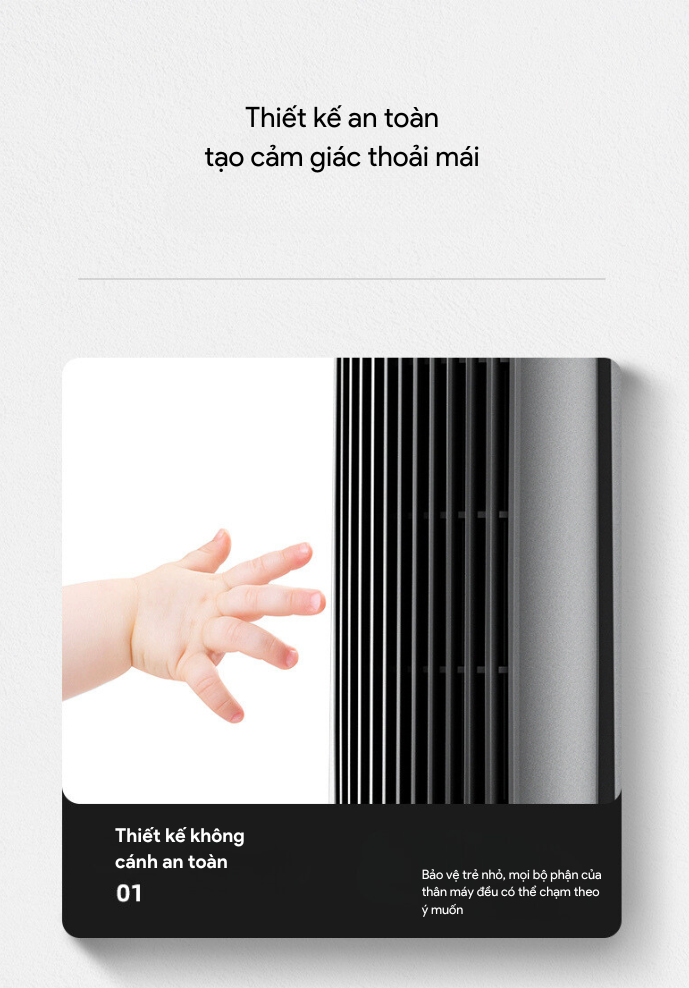 Sử dụng công nghệ Air Multiplier tạo ra luồng không khí mạnh mẽ liên tục. Luồng gió mát mà không cần cánh quạt quay nhanh, an toàn cho trẻ em, vật nuôi. Hoạt động êm