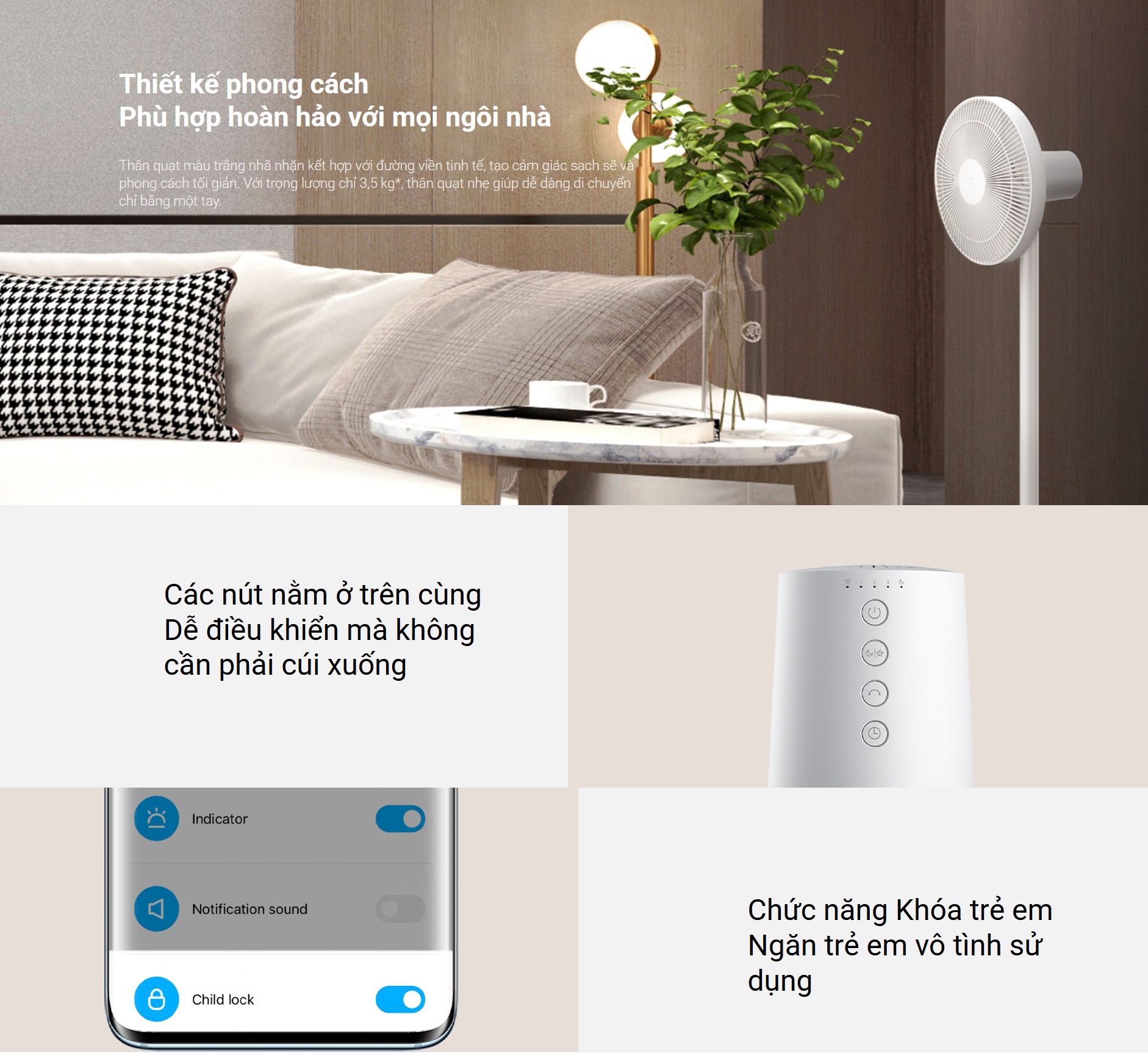 - Phạm vi quạt 12 m*: Luôn mát mẻ mà không cần phải di chuyển