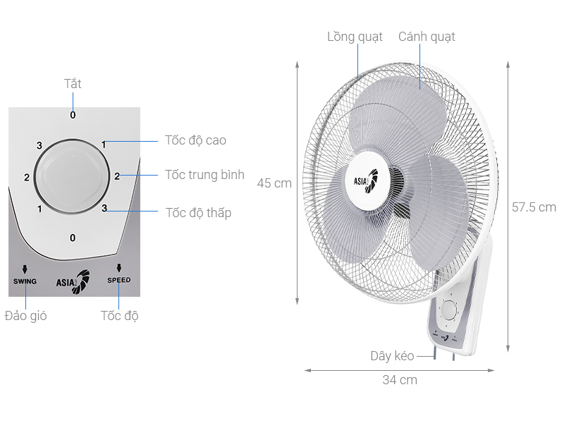 THÔNG TIN VỀ SẢN PHẨM QUẠT TREO TƯỜNG ASIAVINA L16021 Thông số kỹ thuật Sải cánh: 40cm Công suất: 55W Dòng điện: 220V-50Hz Lượng gió: 88 m3/phút Hệ số tiết kiệm năng lượng: 1,24