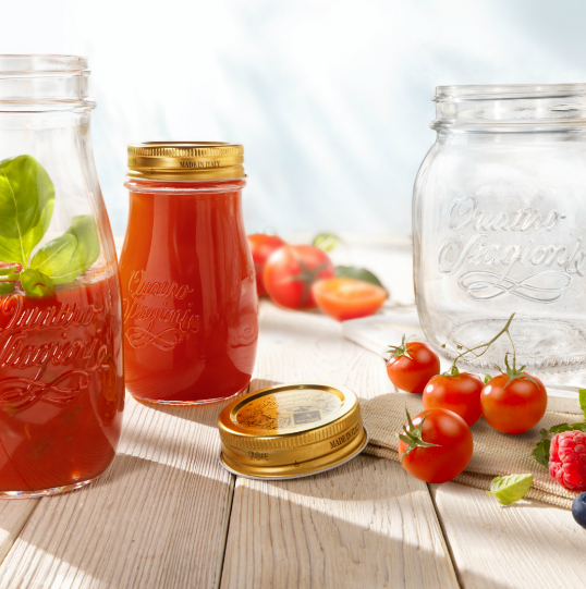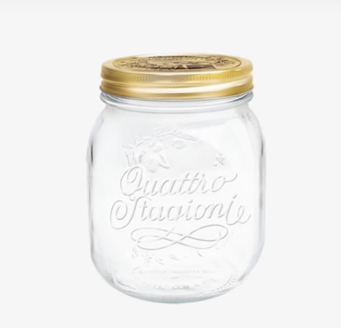 Thiết kế tiện lợi và sang trọng Nắp đậy màu vàng đồng nổi bật có in logo, thiết kế dạng xoay giúp đậy kín và cách ly thực phẩm khỏi bụi bẩn. Phần thân hũ cách điệu với logo Quattro Stagioni in nổi trên thân thủy tinh vừa đẹp mắt vừa có công dụng chống trơn trượt và làm nổi bật sự tinh tế mang đậm phong cách Ý