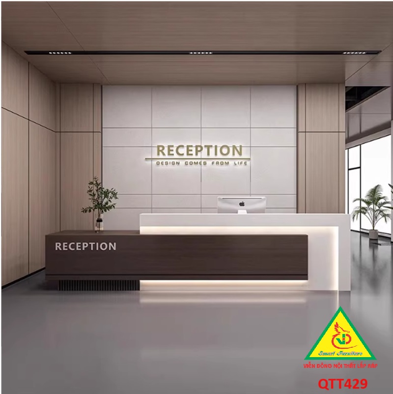 Tính thẩm mỹ: Gỗ có vẻ đẹp tự nhiên, tạo cảm giác ấm cúng và gần gũi. Quầy tiếp tân bằng gỗ có thể điểm tô cho không gian với các mẫu mã và hoa văn khác nhau, phù hợp với phong cách trang trí và thiết kế tổng thể của doanh nghiệp.