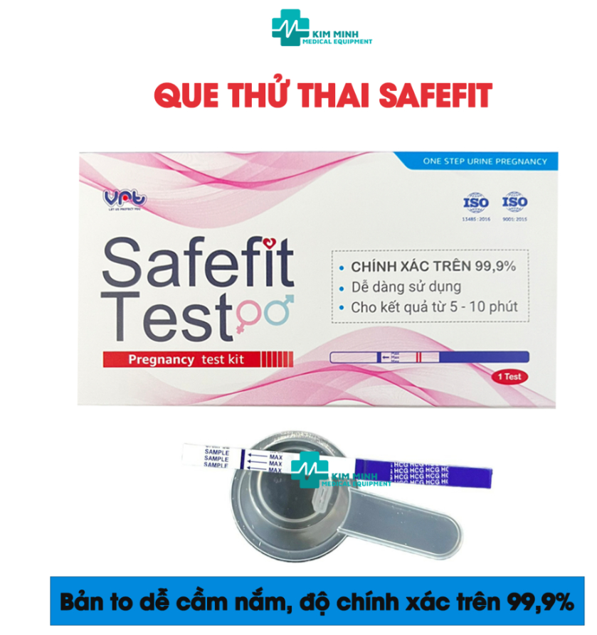 MÔ TẢ SẢN PHẨM Que thử thai nhanh Safefit Test (Hộp 1 que x 1 cốc nhựa) Mô Tả: Que thử thai Safefit Pregnancy Test Kit dùng định tính hormone HCG trong nước tiểu người, giúp phát hiện sớm thai kỳ (7 - 10 ngày sau khi thụ thai). Cho kết quả nhanh chỉ từ 5 - 10 phút với độ chính xác cao. Thành phần của que thử thai nhanh Safefit