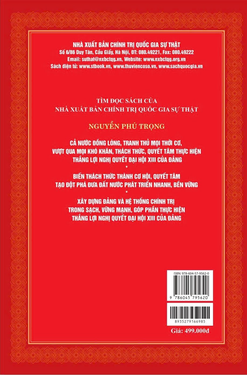 Cuốn sách “Xây dựng Đảng và hệ thống chính trị trong sạch, vững mạnh, góp phần thực hiện thắng lợi Nghị quyết Đại hội XIII của Đảng” tuyển chọn các bài phát biểu, bài viết,