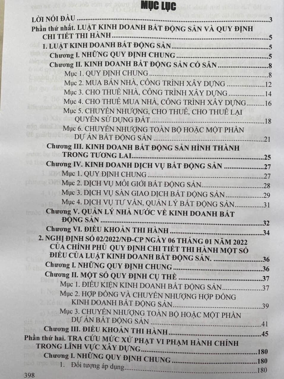 Ngày 06 tháng 01 năm 2022, Chính phủ đã ban hành Nghị định số 02/2022/NĐ-CP quy định chi tiết thi hành một số điều của Luật Kinh doanh bất động sản, có hiệu lực từ ngày 01/03/2022 với nhiều nội dung quan trọng quy định chi tiết một số điều, khoản của Luật Kinh doanh bất động sản. Nhằm giúp quý độc giả nắm bắt những quy định nêu trên Nhà xuất bản Hồng Đức xuất bản cuốn sách: