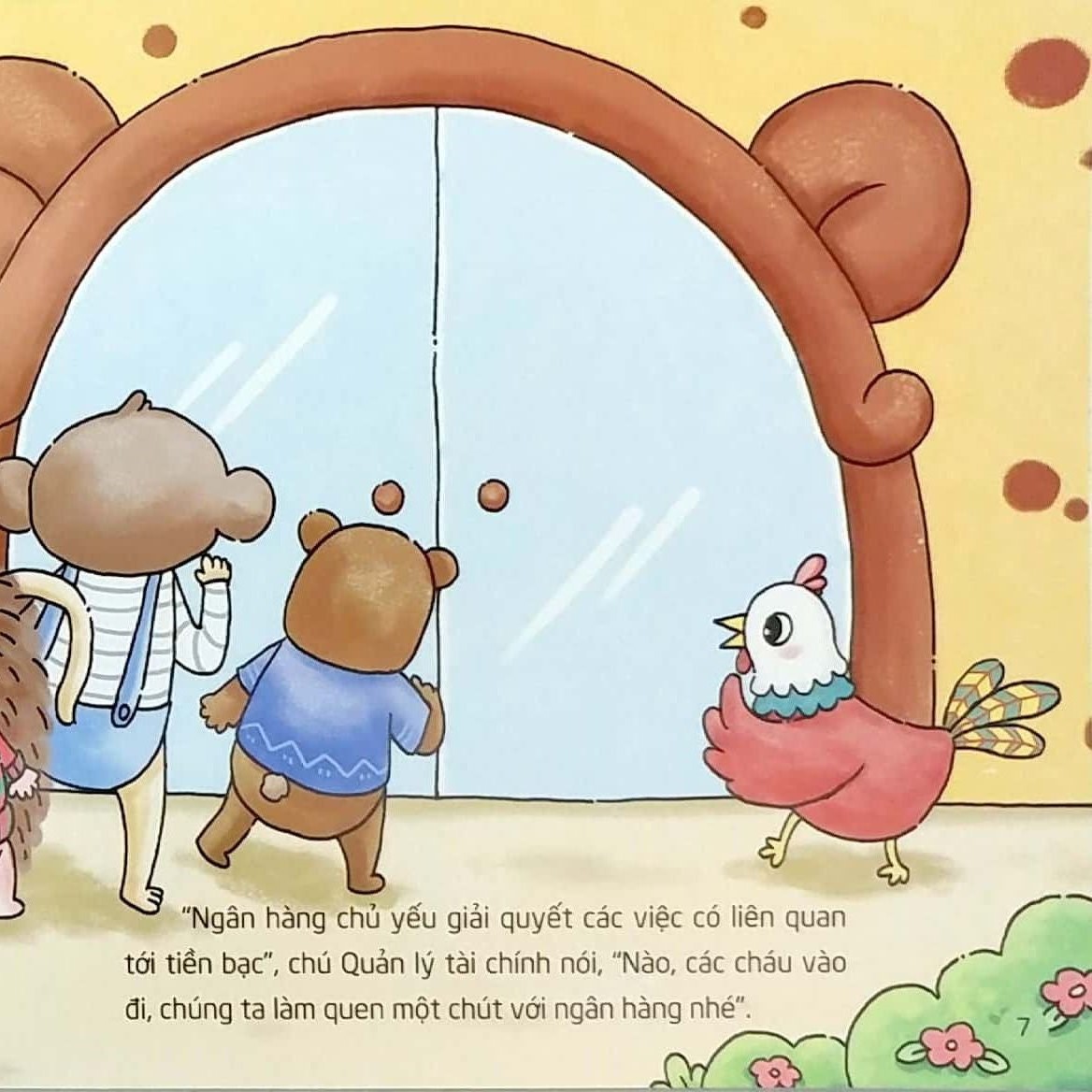 Ngân hàng thần kỳ: Cuốn sách xây dựng một thế giới ngân hàng thần kỳ, nơi các bé có thể gửi tiền, rút tiền và nhận lãi. Điều này giúp trẻ hình dung một cách trực quan về hoạt động của ngân hàng và vai trò của tiền bạc.