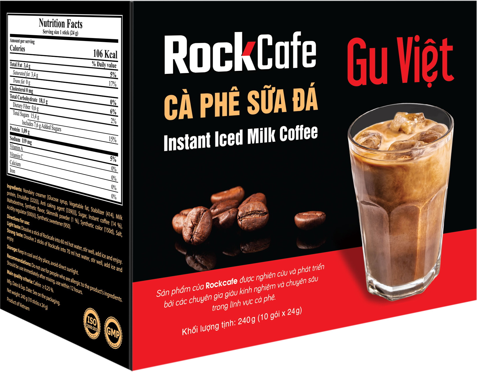 RockCafe - Gu Việt được sáng tạo đặc biệt để đáp ứng nhu cầu của những tín đồ cà phê yêu thích hương vị đậm đà và mạnh mẽ. Với hương cà phê truyền thống được nhấn mạnh và sự cân bằng hoàn hảo giữa cà phê, sữa và đường, RockCafe - Gu Việt mang đến cho bạn một ly cà phê hòa tan thơm ngon, đậm đà và sắc nét.