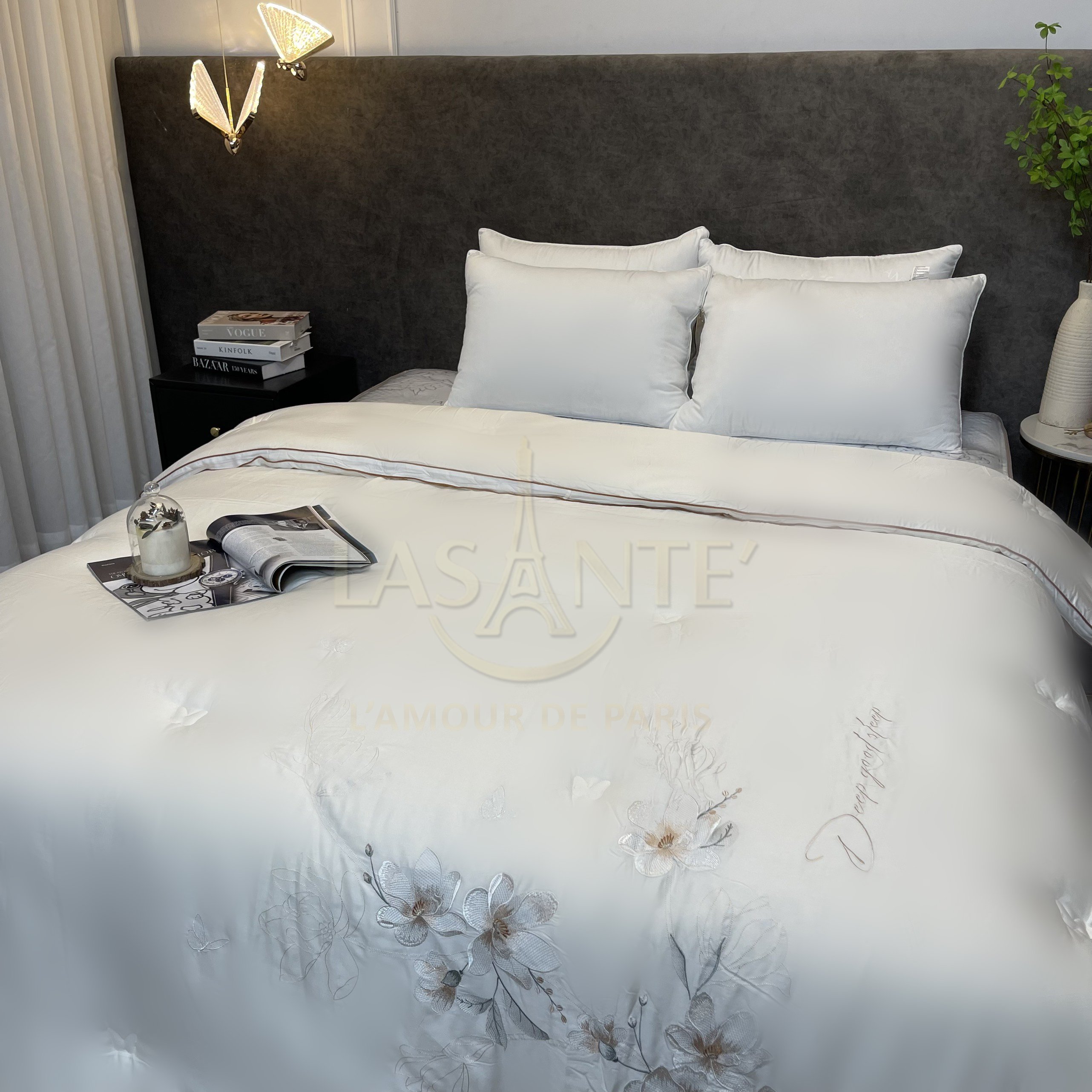 Mua tại Tiktoḳ̂ ̆ đ̂ ̂ ̉ ' 1 chiếc ruột chăn nhìn là thấy mê: lấp lánh, sang chảnh Size: 200*230 cm Cân nặng: 4kg Có thể làm ruột chăn hoặc đắp thẳng trực tiếp Ruột được làm từ bông đậu nành với khả năng kháng khuẩn cao, thân thiện với môi trường, độ đàn hồi tốt, giữ ấm nhanh Chất liệu vải tencel cao cấp: mềm mại, óng ả, mát mẻ Thiết kế họa tiết thêu tinh tế, đẳng cấp Ưu điểm của ruột chăn Lasante