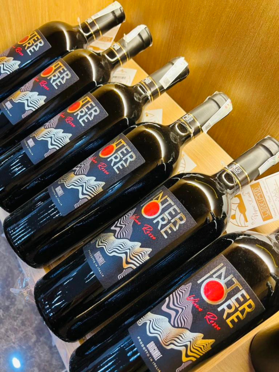 Interiore Vino Rosso được sản xuất chế biến từ 2 loại nho Primitivo và Negroamaro.