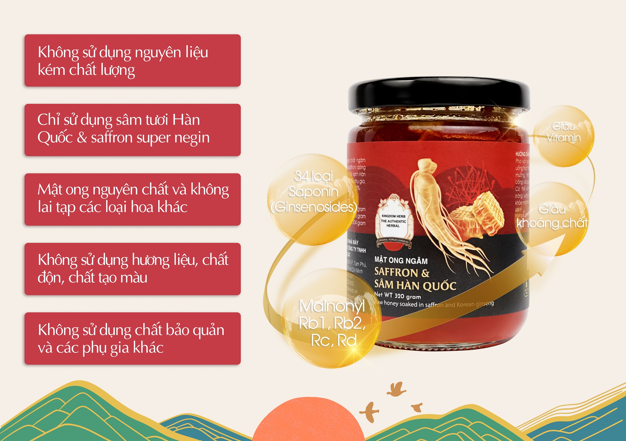 - Nói không với hàng xách tay kém chất lượng, trôi nổi trên thị trường Saffron sâm mật ong Hàn Quốc Kingdom Herb đảm bảo 5 KHÔNG: