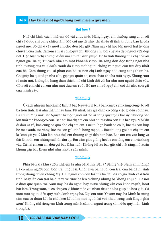 100 Bài làm văn hay lớp 2 được biên soạn theo chương trình mới của Bộ giáo dục và đào tạo. Nhằm giúp các em có tài liệu tham khảo, luyện tập chuẩn bị tốt cho các bài tập làm văn.