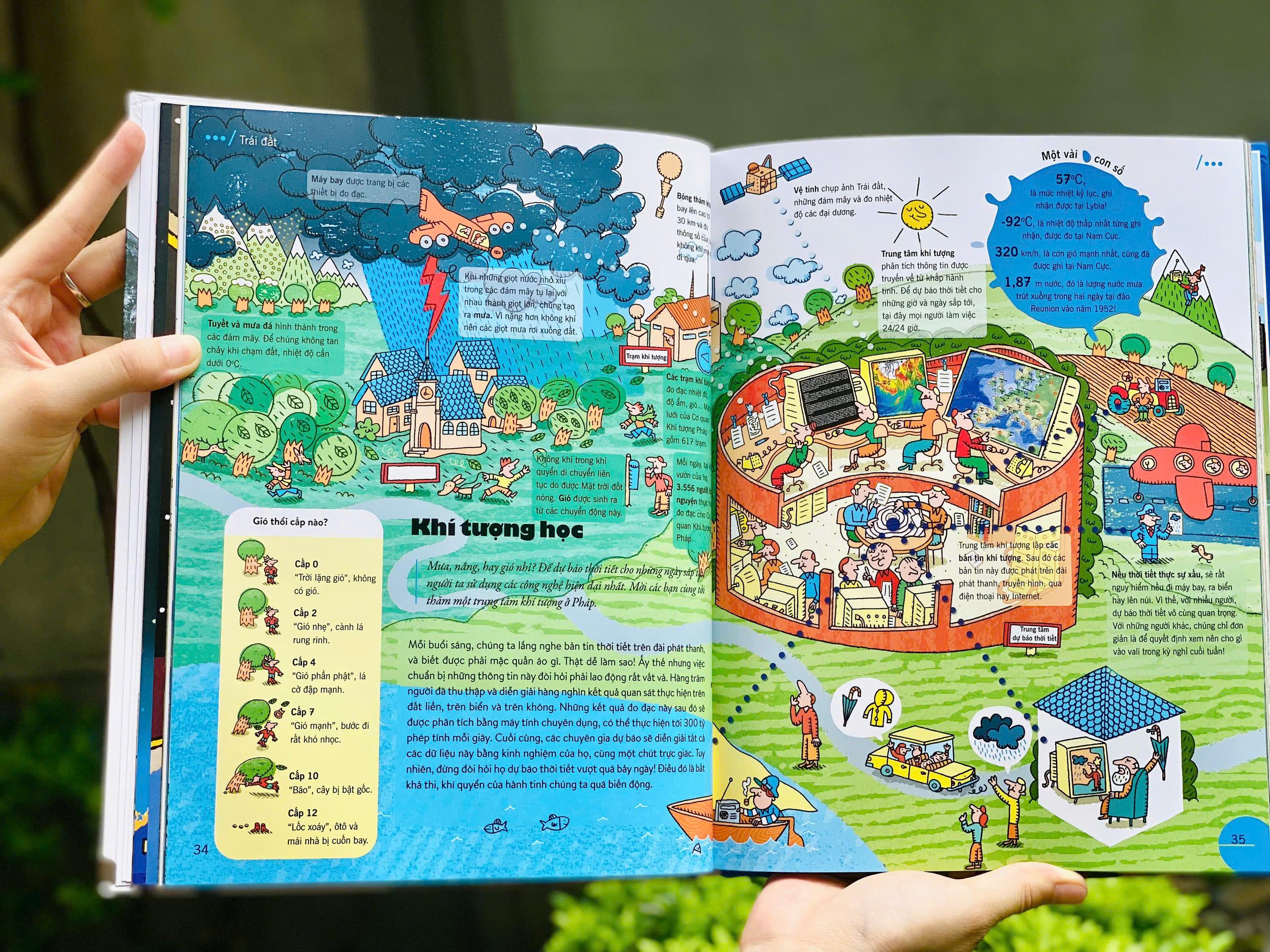- Khoa học & Công nghệ Minh họa sống động – Thu hút cả những bạn nhỏ hiếu động nhất 184 trang in màu rực rỡ, ngập tràn hình ảnh trực quan giúp trẻ tiếp cận tri thức một cách tự nhiên, như đang bước vào một bộ phim tài liệu bằng tranh. Kiến thức nhập môn của nhiều môn học – trong một cuốn sách duy nhất