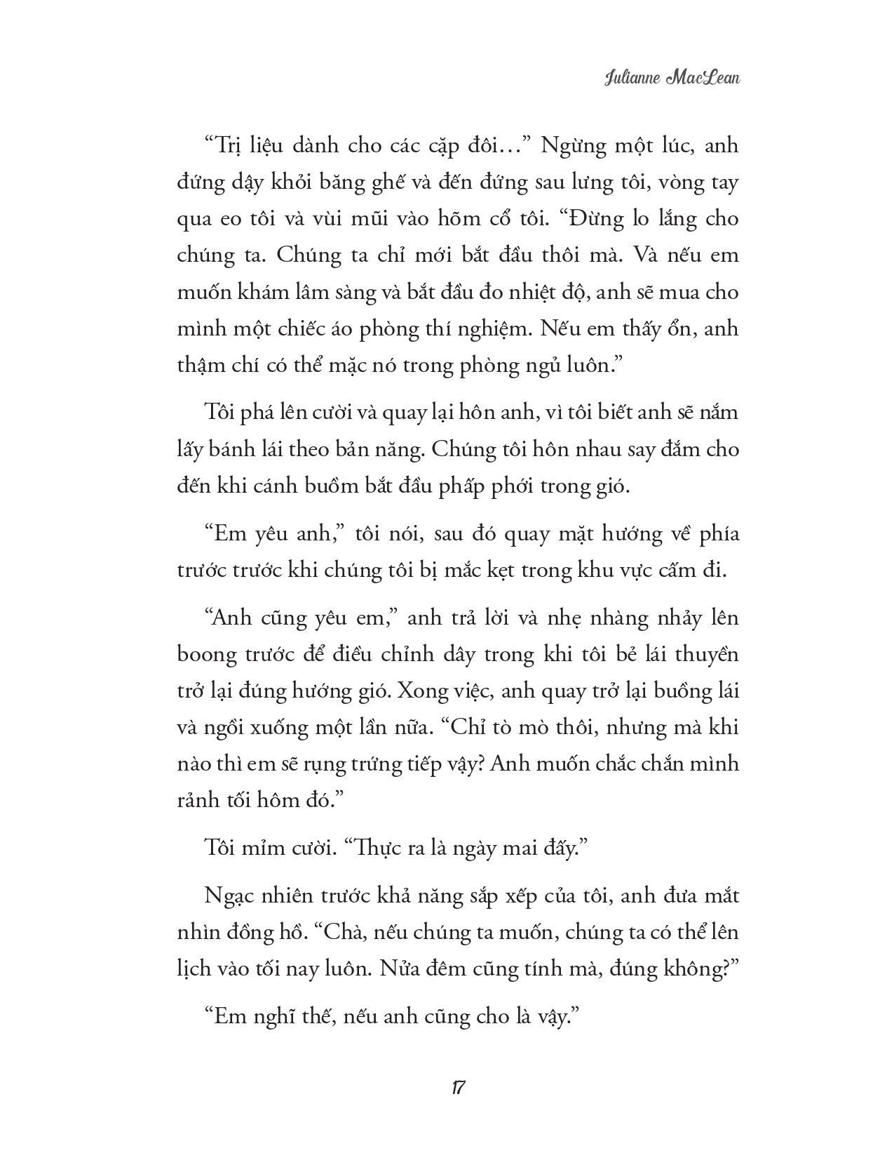 Julianne MacLean là tác giả có sách bán chạy nhất của USA Today với hơn 30 tiểu thuyết, trong đó có bộ sách nổi tiếng Color of Heaven. Độc giả mô tả những cuốn sách của cô ấy là “ngoạn mục”, “có hồn” và “nâng đỡ tinh thần”. MacLean đã bốn lần lọt vào vòng chung kết của giải thưởng RITA dành cho Nhà văn Lãng mạn Hoa Kỳ và đã giành được nhiều giải thưởng, bao gồm Booksellers’ Best Award và Reviewers’ Choice Award của Romantic Times. Tiểu thuyết của cô đã bán được hàng triệu bản trên toàn thế giới và đã được dịch ra hơn 10 loại ngôn ngữ khác nhau.