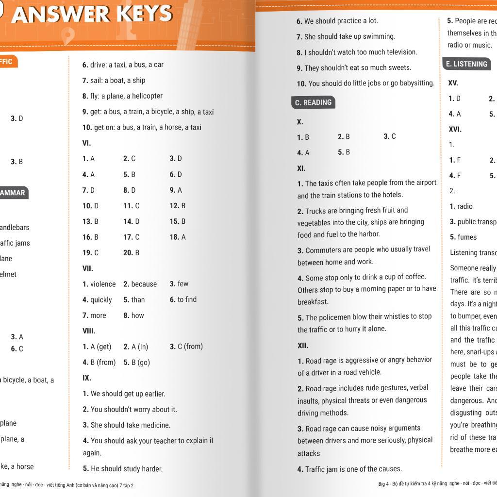 Big 4 bộ đề tự kiểm tra 4 kỹ năng Nghe - Nói - Đọc - Viết TA (cơ bản và nâng cao) lớp 7 tập 1