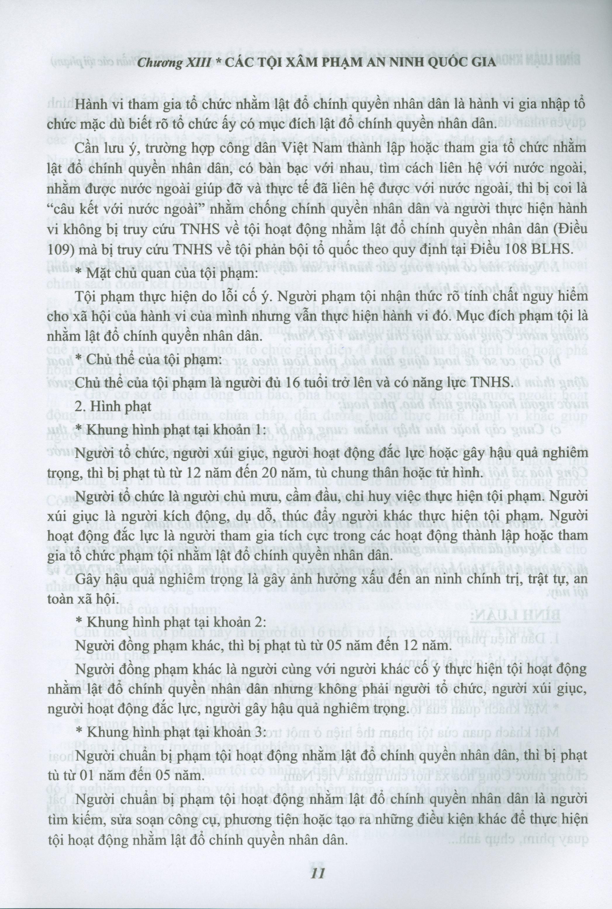 Trên cơ sở các quy định của BLHS năm 2015, được sửa đổi, bổ sung năm 2017, các văn bản hướng dẫn của cơ quan có thẩm quyền, các án lệ hình sự đã được công bố, các văn bản pháp luật khác có liên quan, tác giả cuốn sách đã đi sâu phân tích, bình luận từng điều luật Phần các tội phạm của BLHS năm 2015, được sửa đổi, bổ sung năm 2017, làm rõ các dấu hiệu pháp lý là căn cứ để định tội, định khung hình phạt của từng tội phạm cụ thể