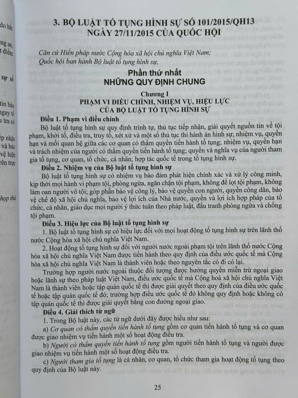 LỜI GIỚI THIỆU Bộ luật Tố tụng hình sự số 101/2015/QH13 ngày 27 tháng 11 năm 2015 của Quốc hội, có hiệu lực kể từ ngày 01 tháng 7 năm 2016, được sửa đổi,