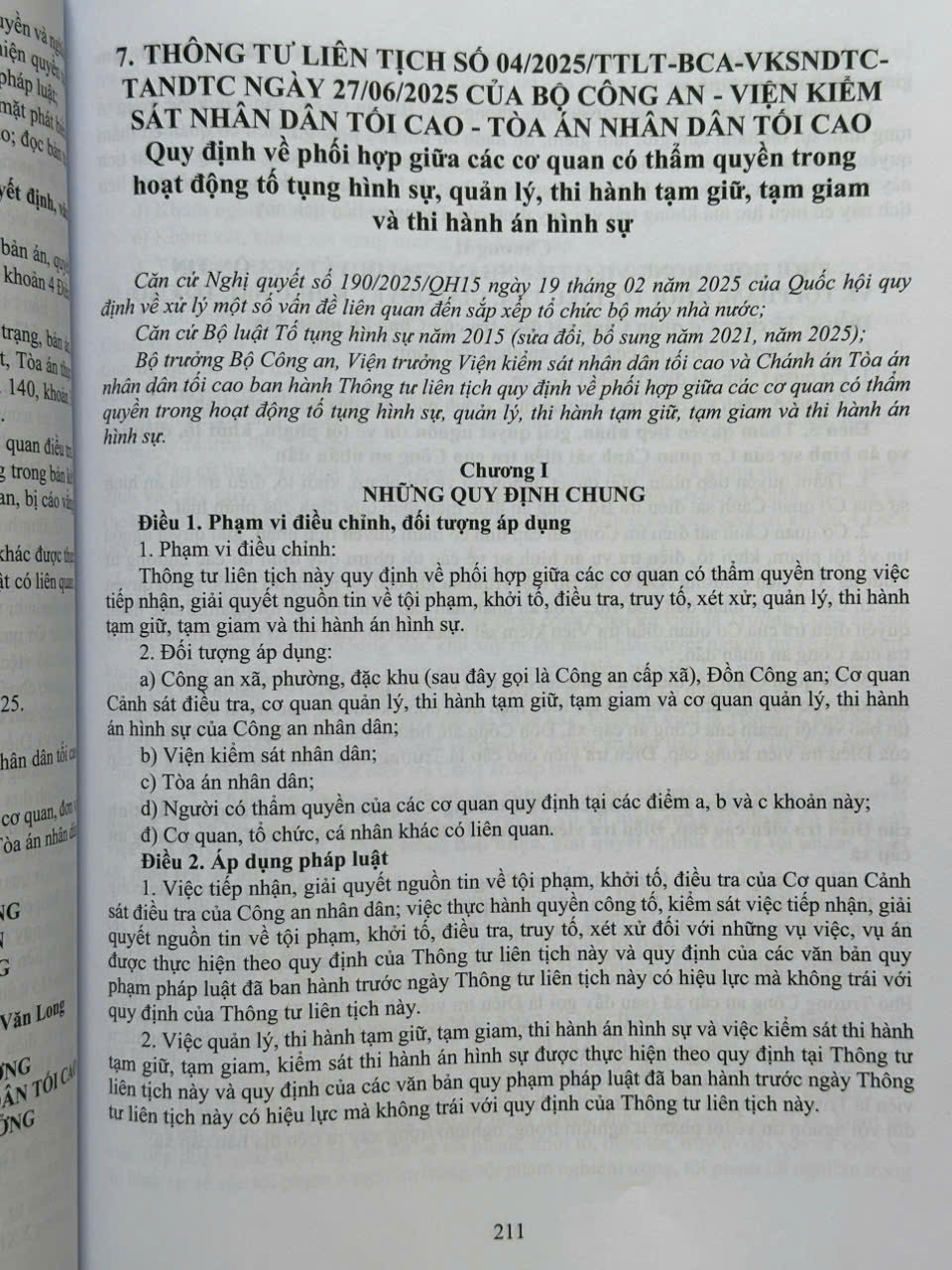 – Thông tư liên tịch 05/2025/TTLT-BCA-BQP-VKSNDTC-TANDTC ngày 01/7/2025 Quy định về phối hợp giữa các cơ quan tiến hành tố tụng trong điều tra, truy tố, xét xử vắng mặt bị can, bị cáo;