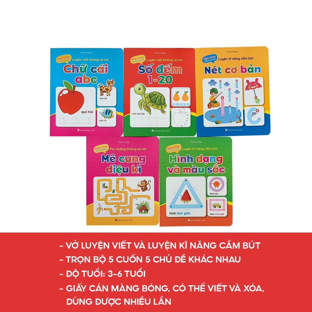 Sách - Bộ Vở Viết Xóa Được - Wipe Clean Luyện Viết Không Sợ Sai ( Bộ 5 Cuốn) - Tặng Kèm 2 Bút