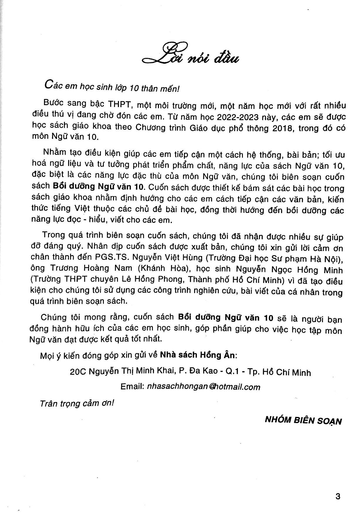Nhằm tạo điều kiện giúp các em tiếp cận một cách hệ thống, bài bản; tối ưu hoá ngữ liệu và tư tưởng phát triển phẩm chất, năng lực của sách Ngữ văn 10, đặc biệt là các năng lực đặc thù của môn Ngữ văn, chúng tôi biên soạn cuốn sách Bồi Dưỡng Ngữ Văn 10 (Dùng Kèm SGK Chân Trời). Cuốn sách được thiết kế bám sát các bài học trong sách giáo khoa nhằm định hướng cho các em cách tiếp cận các văn bản, kiến thức tiếng Việt thuộc các chủ đề bài học, đồng thời hướng đến bồi dưỡng các năng lực đọc - hiểu, viết cho các em.