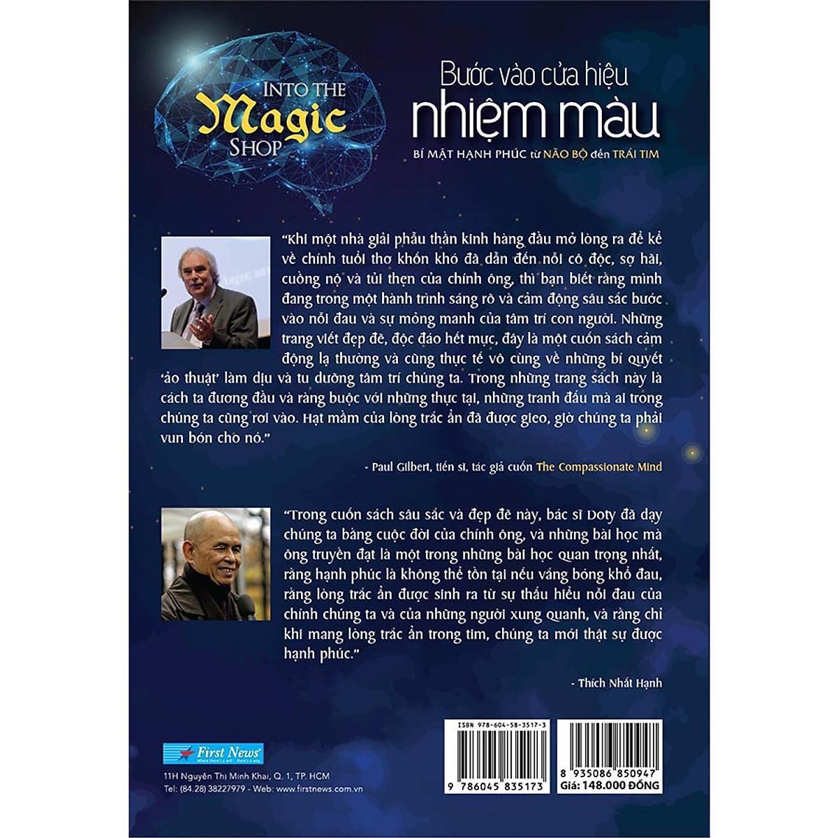 “Bước vào cửa hiệu nhiệm màu” là lời giải đáp khoa học về những bí ẩn của não bộ trong sự liên kết chặt chẽ với trái tim, tìm đến cội nguồn của hạnh phúc với ý nghĩa bản chất nhất của từ này. Sách cũng là câu chuyện chân thật, đầy cảm động về hành trình vươn lên trong cuộc sống của chính tác giả.