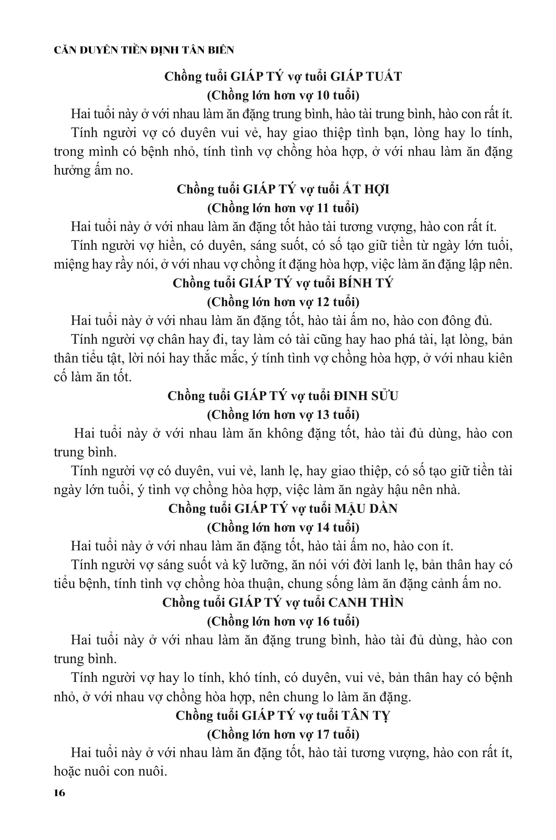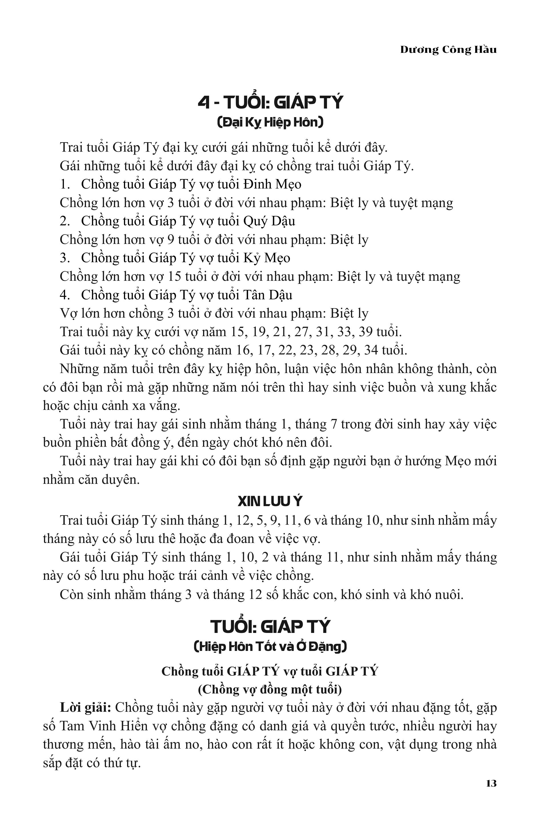 Danh mục được lấy theo tuổi của người nam giới (chồng, hôn phu), từ đó các bạn có thể coi xem những tuổi (nữ) nào hợp/ khắc – kỵ để tạo mối lương duyên tốt.