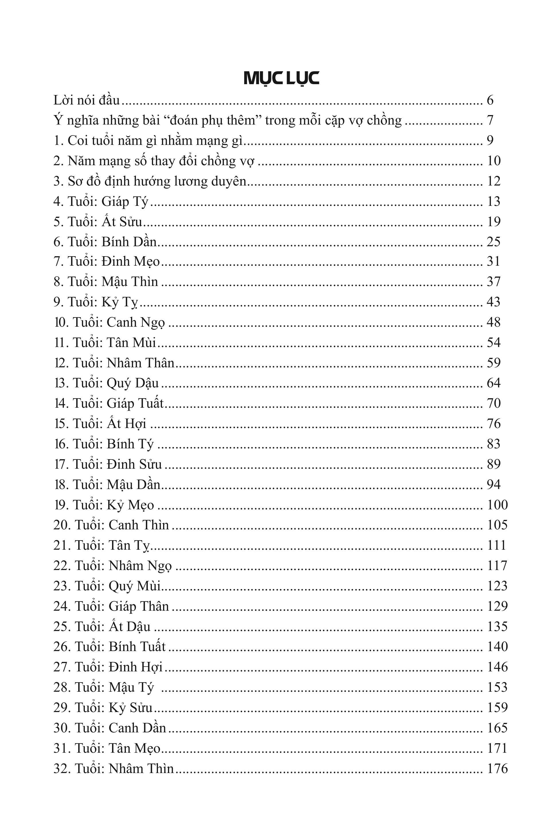 Danh mục được lấy theo tuổi của người nam giới (chồng, hôn phu), từ đó các bạn có thể coi xem những tuổi (nữ) nào hợp/ khắc – kỵ để tạo mối lương duyên tốt.