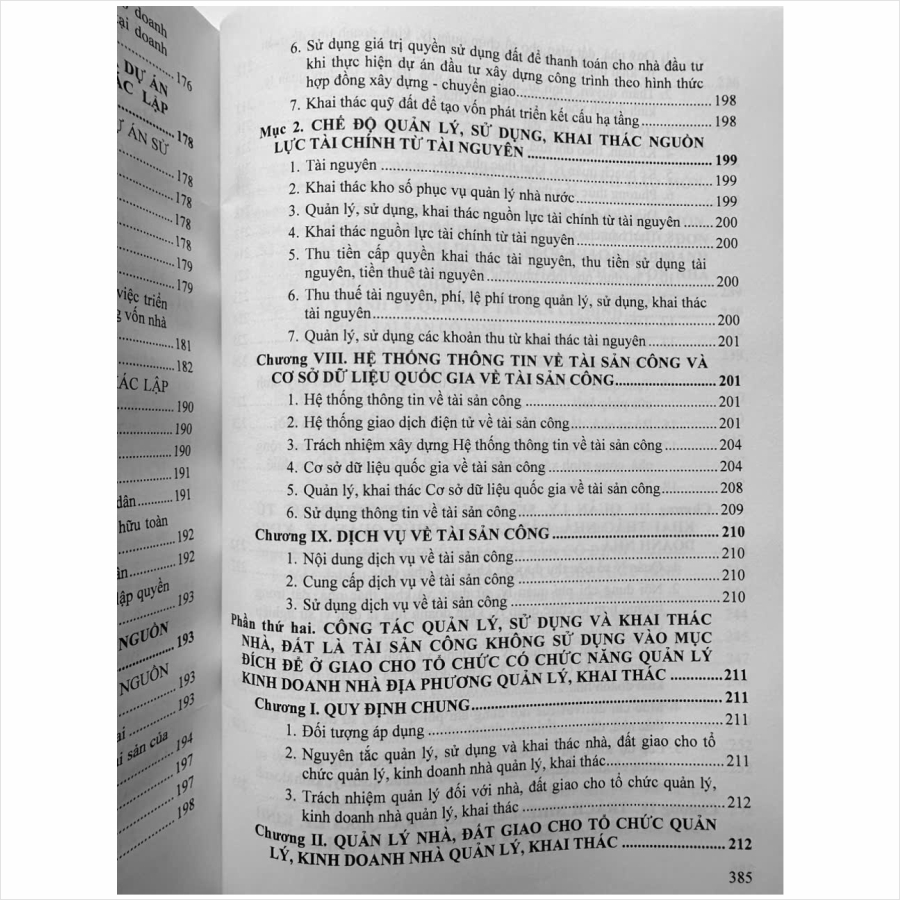 Luật Quản lý, sử dụng tài sản công (hiện hành) (sửa đổi năm 2020) gồm 10 chương, 134 điều, quy định về quản lý nhà nước đối với tài sản công; chế độ quản lý,