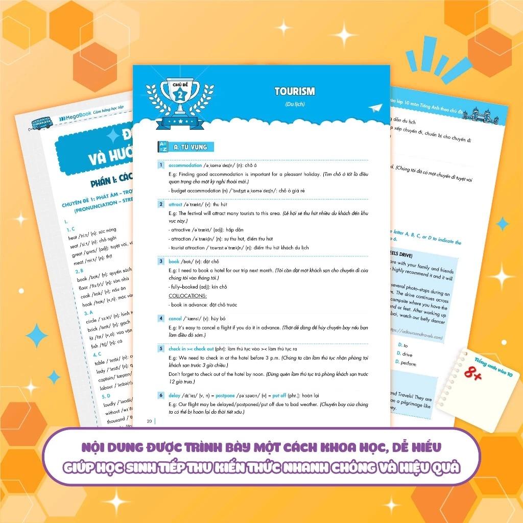Chinh phục 8+ luyện thi vào lớp 10 môn Tiếng Anh theo chủ đề (sách ôn luyện cho các bộ sách giáo khóa mới)là cuốn sách trong bộ sách “Chinh phục 8+ luyện thi vào lớp 10 theo chủ đề” được biên soạn bởi các tác giả uy tín và nhiều năm kinh nghiệm giảng dạy, luyện thi vào lớp 10. Cuốn sách được tổng hợp bài bản, cập nhật mới nhất các nội dung được đưa vào đề thi mônTiếng Anh, bám sát ma trận đề mới nhất của Bộ Giáo dục thi vào 10 năm 2025, chắc chắn sẽ giúp các em vững vàng kiến thức, tự tin đạt điểm cao trong kỳ thi sắp tới.