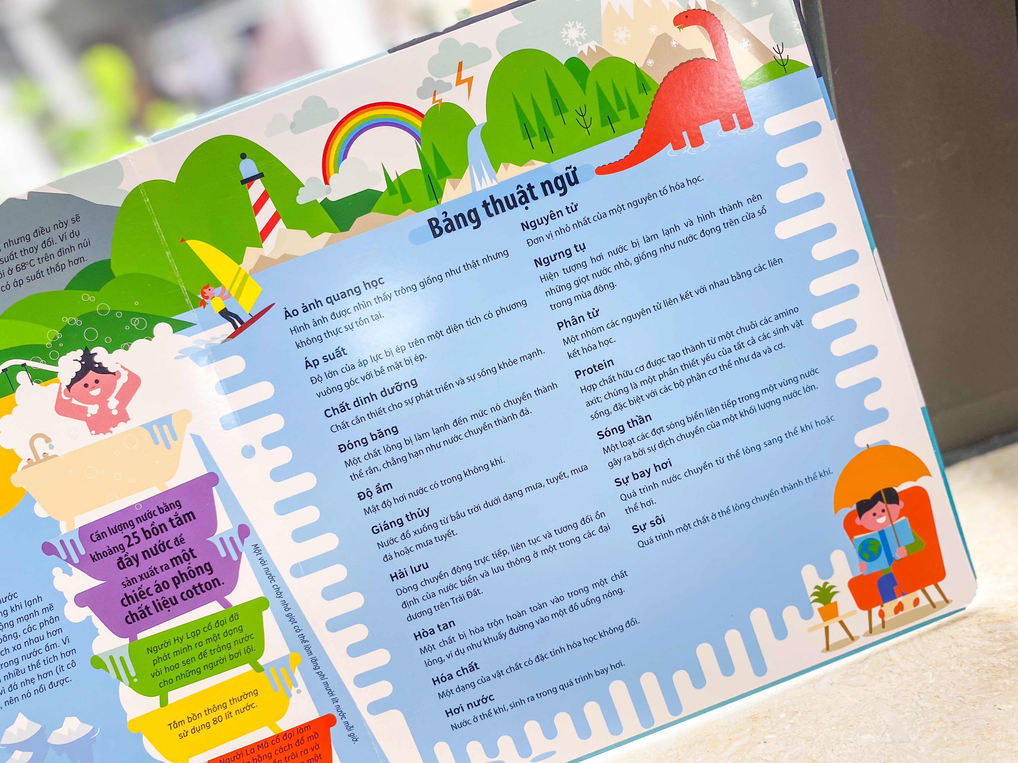 Cuốn “Cuộc phiêu lưu của nước” đưa trẻ khám phá về nước ở khắp mọi nơi, từ bầu trời đến mặt đất, từ trong cơ thể đến ngoài thiên nhiên, từ bề mặt trái đất đến những hệ thống ống ngầm đồ sộ trong lòng đất…