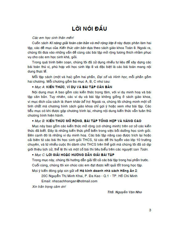 Kĩ Năng Giải Toán Căn Bản Và Mở Rộng Lớp 8 được biên soạn theo các bài tập tương tự sách giáo khoa. Ngoài ra, đưa vào nhiều dạng bài tập mở rộng cho học sinh khá giỏi.