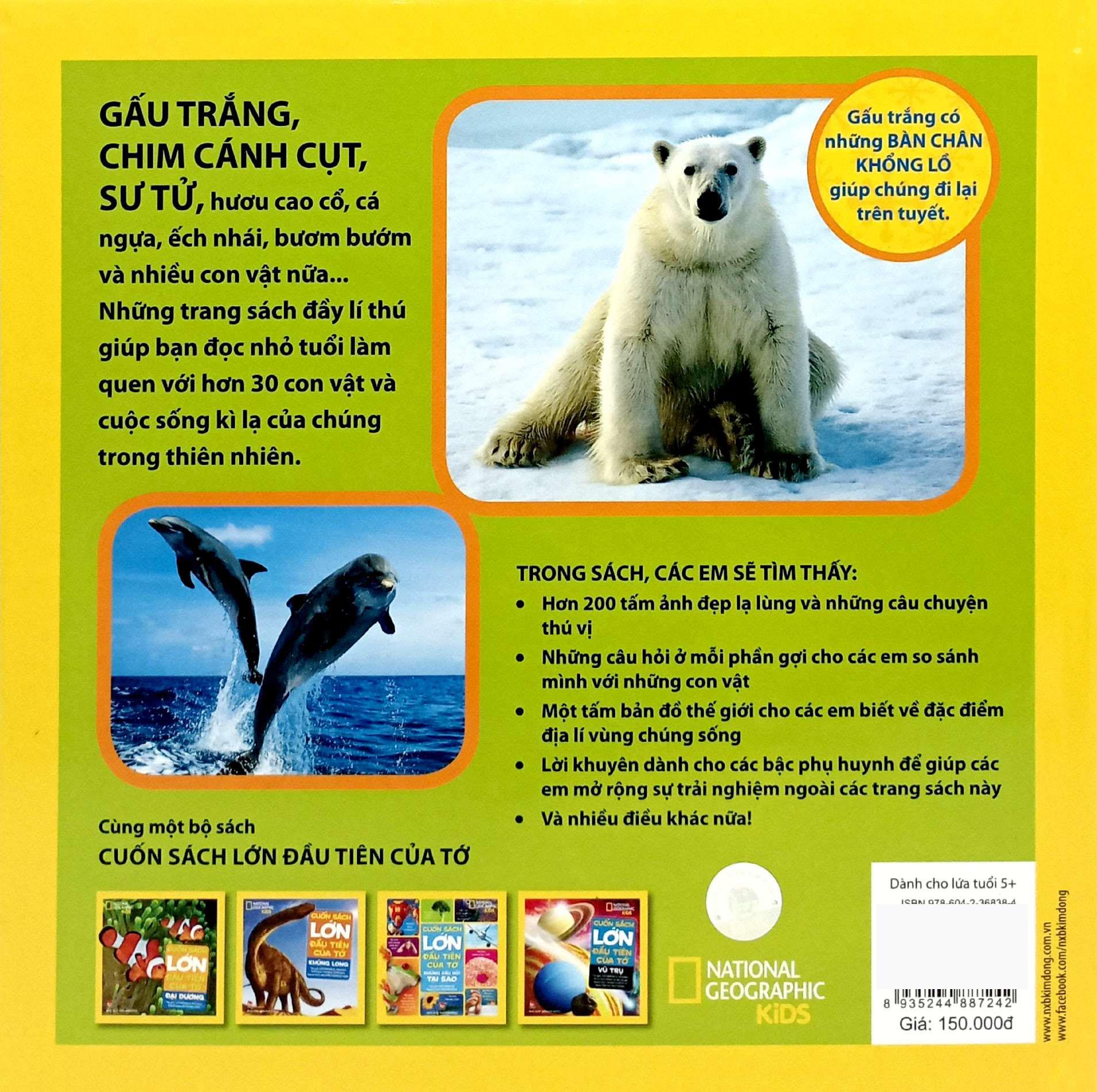Cuốn Sách Lớn Đầu Tiên Của Tớ - Động Vật (Tái Bản 2024) GẤU TRẮNG, CHIM CÁNH CỤT, SƯ TỬ, hươu cao cổ, cá ngựa, ếch nhái, bươm bướm và nhiều con vật nữa... Những trang sách đầy lí thú giúp bạn đọc nhỏ tuổi làm quen với hơn 30 con vật và cuộc sống kì lạ của chúng trong thiên nhiên. TRONG SÁCH, CÁC EM SẼ TÌM THẤY: