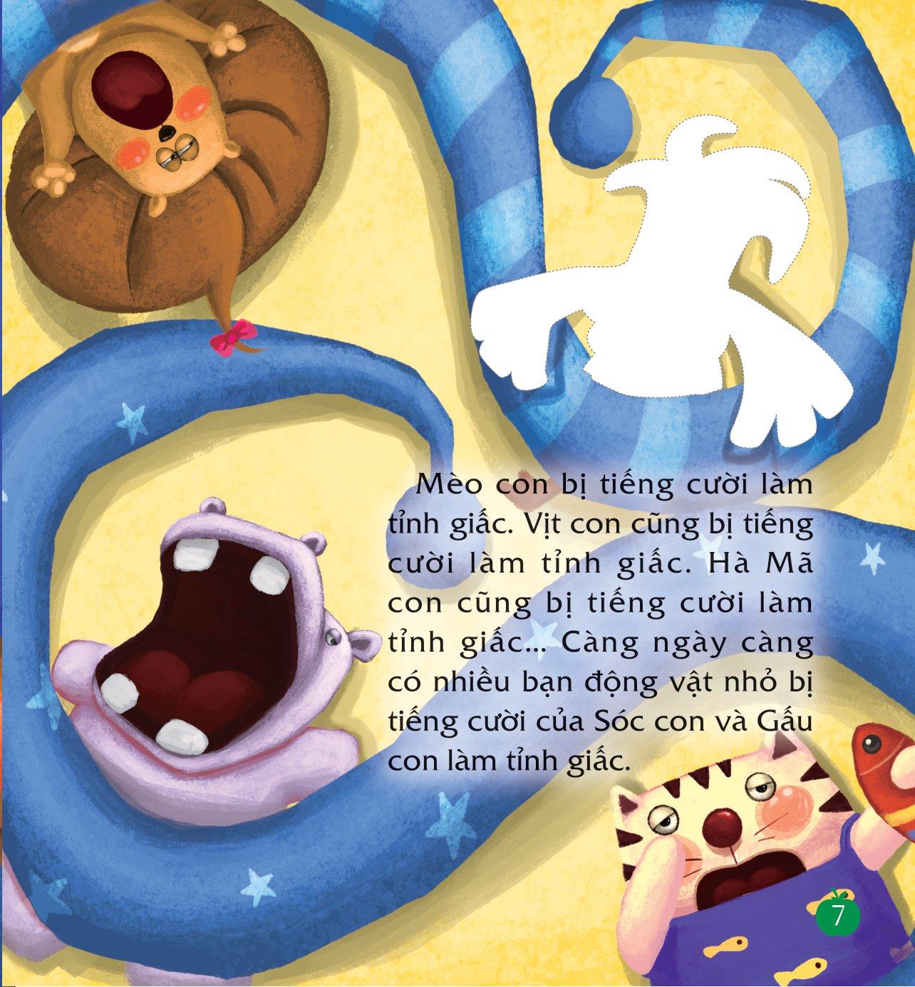 Lúc này, Sóc con và Gấu con lén lật chăn ra, chớp chớp đôi mắt nhỏ, sau đó lần lượt lấy ô tô đồ chơi giấu trong chăn ra để chơi. Sóc con và Gấu con nằm trên giường nghịch xe ô tô. Hai bạn vừa chơi vừa cười đùa, trêu chọc nhau ầm ĩ. Tiếng cười đùa càng ngày càng to.