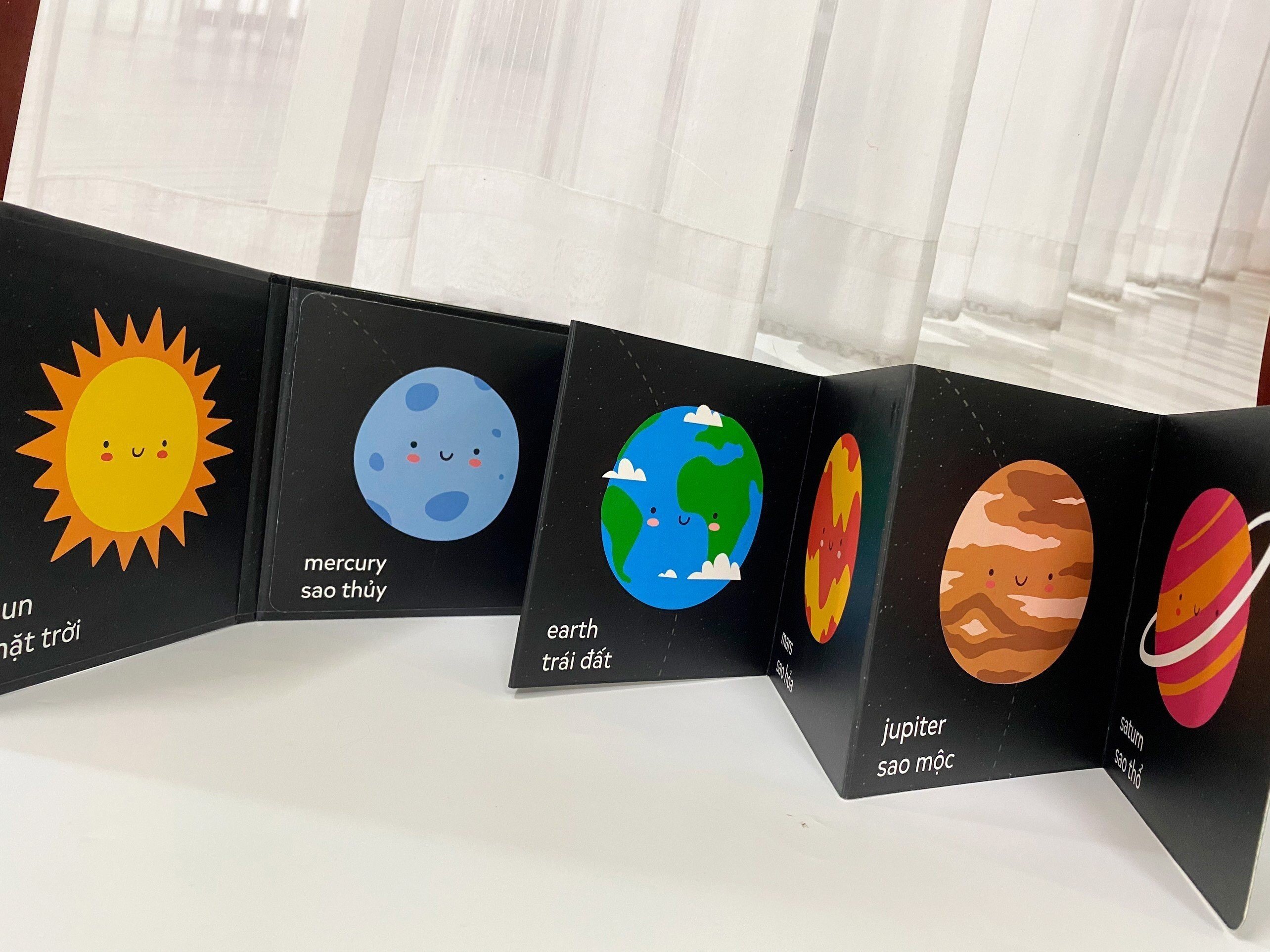 Sách dạng zigzag board book, giúp bé mở rộng từ vựng tiếng Anh, nhận biết các chòm sao.