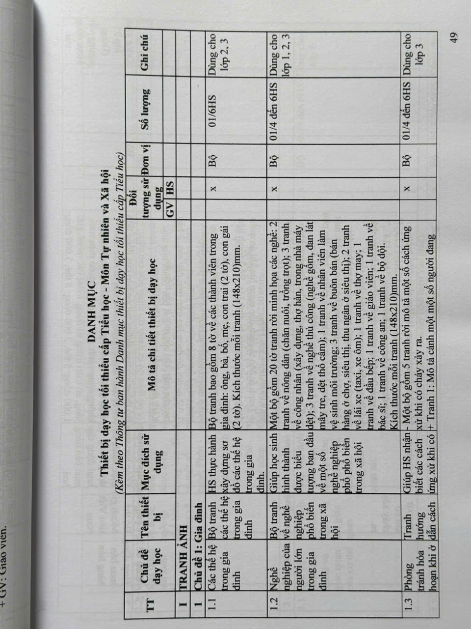 Sách Danh Mục Thiết Bị Dạy Học Tối Thiểu Trong Nhà Trường
