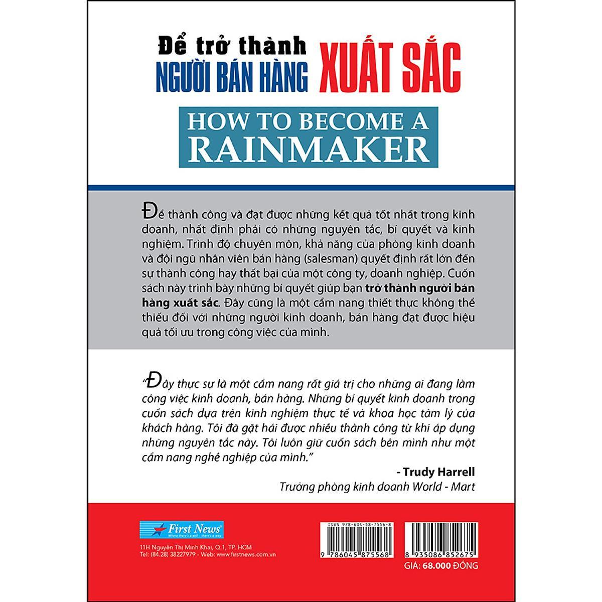 Hy vọng với cuốn sách Để Trở Thành Người Bán Hàng Xuất Sắc, bạn sẽ tìm thấy nhiều điều bổ ích có thể vận dụng vào công việc bán hàng cũng như vươn đến những nấc thang thành công khác trong sự nghiệp kinh doanh của bạn.