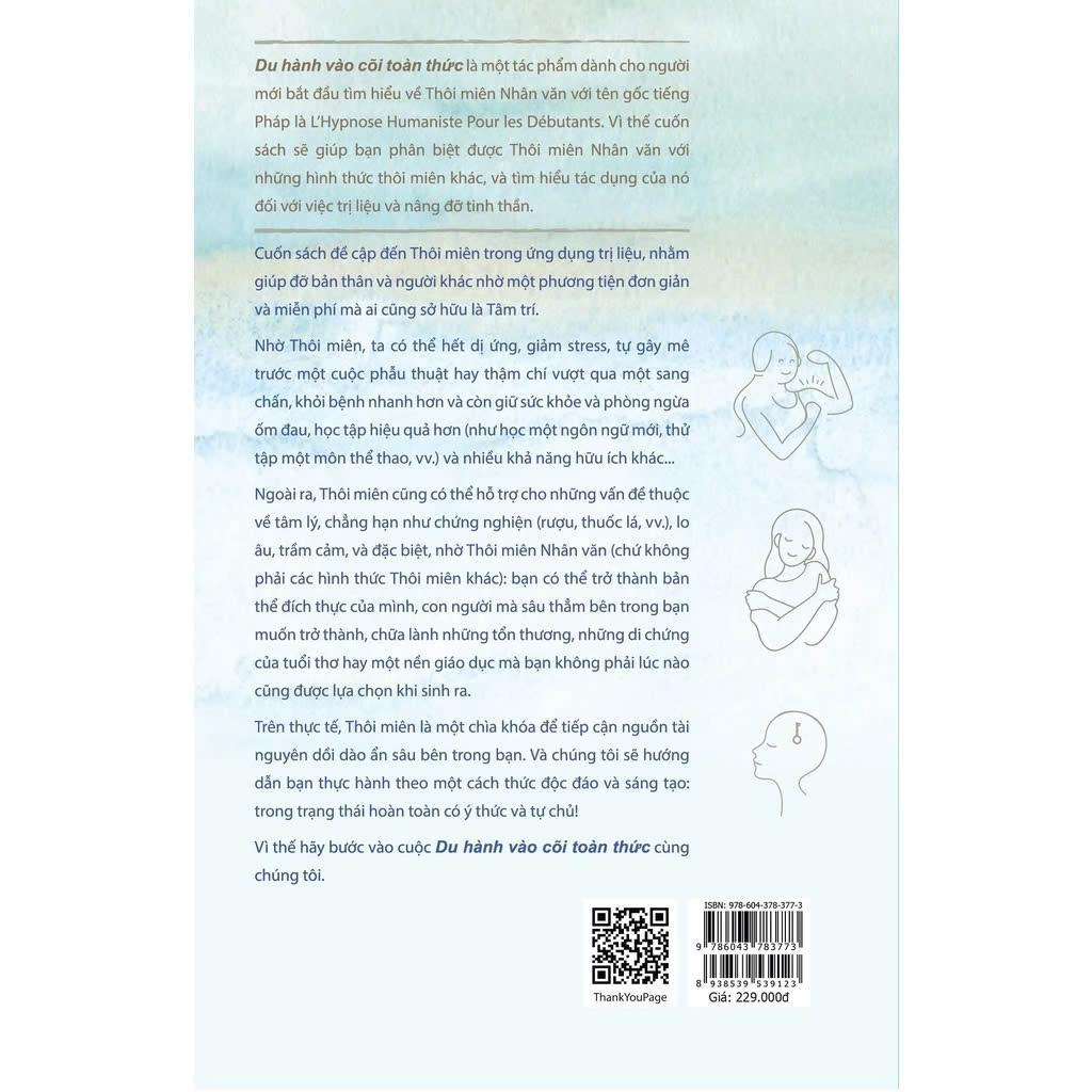 Mua tại TiktokSách - Du Hành Vào Cõi Toàn Thức Du hành vào cõi toàn thức là một tác phẩm dành cho người mới bắt đầu tìm hiểu về Thôi miên Nhân văn với tên gốc Pháp là L’Hypnose Humaniste Pour les Débutants. Vì thế cuốn sách sẽ giúp bạn phân biệt được Thôi miên Nhân văn với những hình thức thôi miên khác, và tìm hiểu tác dụng của nó đối với việc trị liệu và nâng đỡ tinh thần. Cuốn sách đề cập đến Thôi miên trong ứng dụng trị liệu, nhằm giúp đỡ bản thân và người khác nhờ một phương diện đơn giản và miễn phí mà ai cũng sở hữu là Tâm trí. Nhờ Thôimiên, ta có thể hết dị ứng, giảm stress, tự gây mê trước một cuộc phẫu thuật hay thậm chí vượt qua một sang chấn, khỏi bệnh nhanh hơn và còn giữ sức khoẻ và phòng ngừa ốm đau, học tập hiệu quả hơn (như học một ngôn ngữ mới, thử tập một môn thể thao…) và nhiều khả năng hữu ích khác… Ngoài ra, Thôi miên cũng có thể hỗ trợ cho những vấn đề thuộc về tâm lý, chẳng hạn như chứng nghiện (rượu, lá,…), lo âu, trầm cảm, và đặc biệt, nhờ Thôi miên Nhân văn (chứ không phải các hình thức Thôi miên khác): bạn có thể trở thành bản thể đích thực của mình, con người mà sâu thẳm bên trong bạn muốn trở thành, chữa lành những tổn thương, những di chứng của tuổi thơ hay một nền giáo dục mà bạn không phải lúc nào cũng được lựa chọn khi sinh ra. Trên thực tế, Thôi miên là một chìa khoá để tiếp cận nguồn tài nguyên dồi dào ẩn sâu bên trọng bạn. Và chúng tôi sẽ hướng dẫn bạn thực hành theo một cách thức độc đáo và sáng tạo: trong trạng thái hoàn toàn có ý thức và tự chủ! Vì thế hãy bước vào cuộc Du hành vào cõi toàn thức cùng chúng tôi. Về Tác Giả: Olivier Lockert là một nhà thôi miên trị liệu, coach và nhà văn từ hơn 30năm nay. Là người sáng lập Thôi miên Nhân văn với vợ là Patricia D'angeli, Olivier Lockert đã cùng bà quản lý Học viện Pháp về Thôi miên Nhân văn và Thôi miên kiểu Erickson (IFHE), tại Paris. Các khoá đào tạo của ông được tham khảo rộng rãi tại châu Âu cũng như ở nhiều quốc gia và nền văn hoá khác như Argentine, Canada, Nga, Trung Quốc, Maroc,... Olivier Lockert được đánh giá cao về kinh nghiệm thực tế và sự đơn giản trong việc truyền đạt những khái niệm trừu tượng, vô thức, toàn thức, vũ trụ… Patricia D'angeli là một nhà thôi miên trị liệu, chuyên về biểu tượng và tâm lý học chiều sâu. Bà là người đồng sáng lập IFHE với chồng Olivier Lockert . Bà cũng điều phối các hội thảo về tâm lý học xuyên thế hệ, cặp đôi, phân tích và giải mã giấc mơ,… tại Pháp, la Réunion, Nga… Bà là tác giả của một số cuốn sách, trong đó Liệu pháp tâm hồn: Chữa lành bằng Trị liệu biểu tượng Nâng cao đã được Thiện Tri Thức xuất bản. Patricia d’ Angeli được đánh giá cao vì trực giác tuyệt vời về ý nghĩa của những thông điệp vô thức, về các nguyên mẫu, tổn thương tâm lý , sự cân bằng của các khía cạnh tính nam và tính nữ trong mỗi chúng ta.