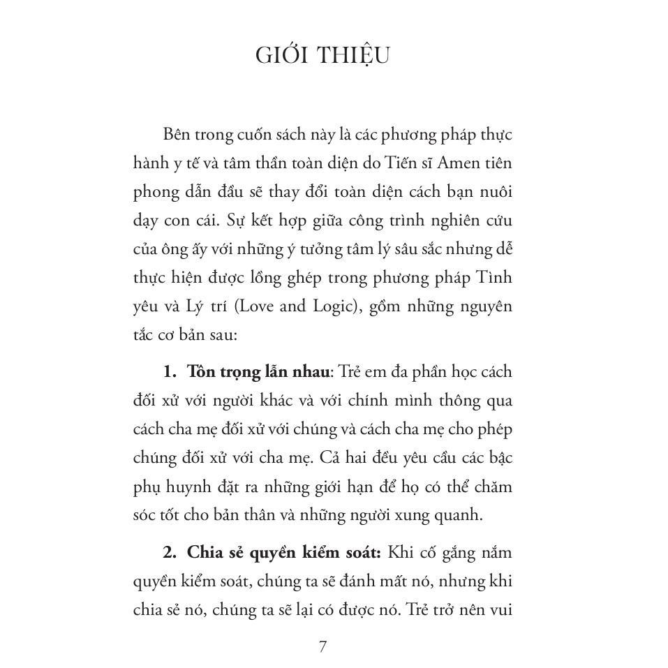 Dr. Daniel G. Amen (MD) Là bác sĩ tâm thần học lâm sàng và nhà sáng lập Amen Clinics, ông nổi tiếng với việc tiên phong sử dụng kỹ thuật chụp não SPECT để đánh giá và rối loạn tâm lý. Ông đã xuất bản hơn 30 đầu sách, trong đó nhiều cuốn là best-seller theo New York Times. Dr. Charles Fay (PhD) Là chuyên gia tâm lý giáo dục, đồng thời là người điều hành chương trình Love and Logic Institute. Ông có hơn 30 năm kinh nghiệm trong việc huấn luyện giáo viên và phụ huynh tại Mỹ, tập trung vào việc thiết lập ranh giới và nuôi dạy trẻ bằng phương pháp giáo dục tích cực nhưng có kỷ luật.